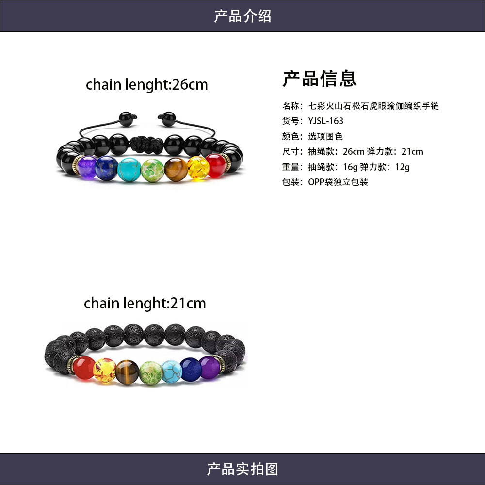 跨境热销七脉合金饰品手串七彩火山石松石虎眼瑜伽编织手链手镯