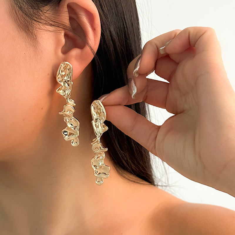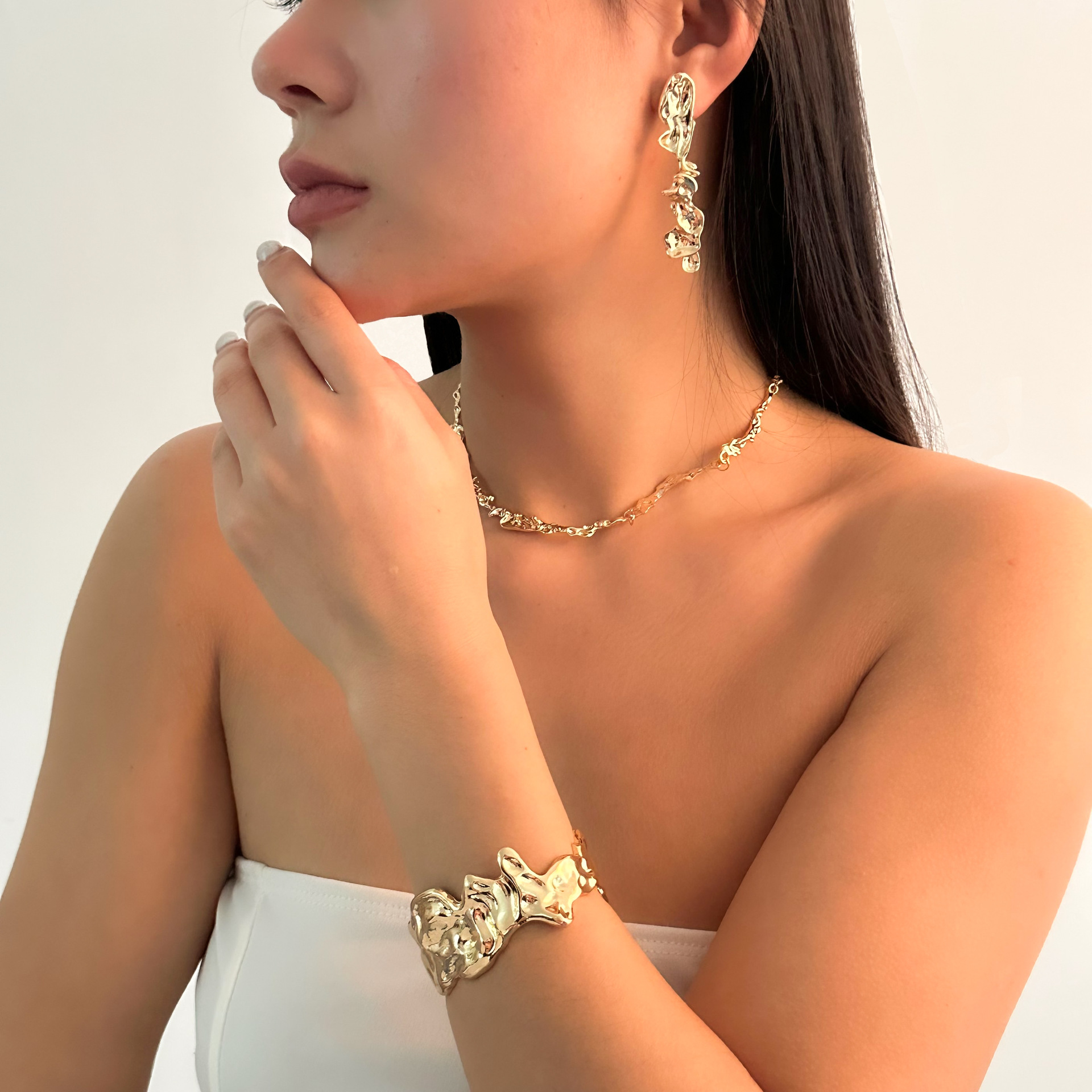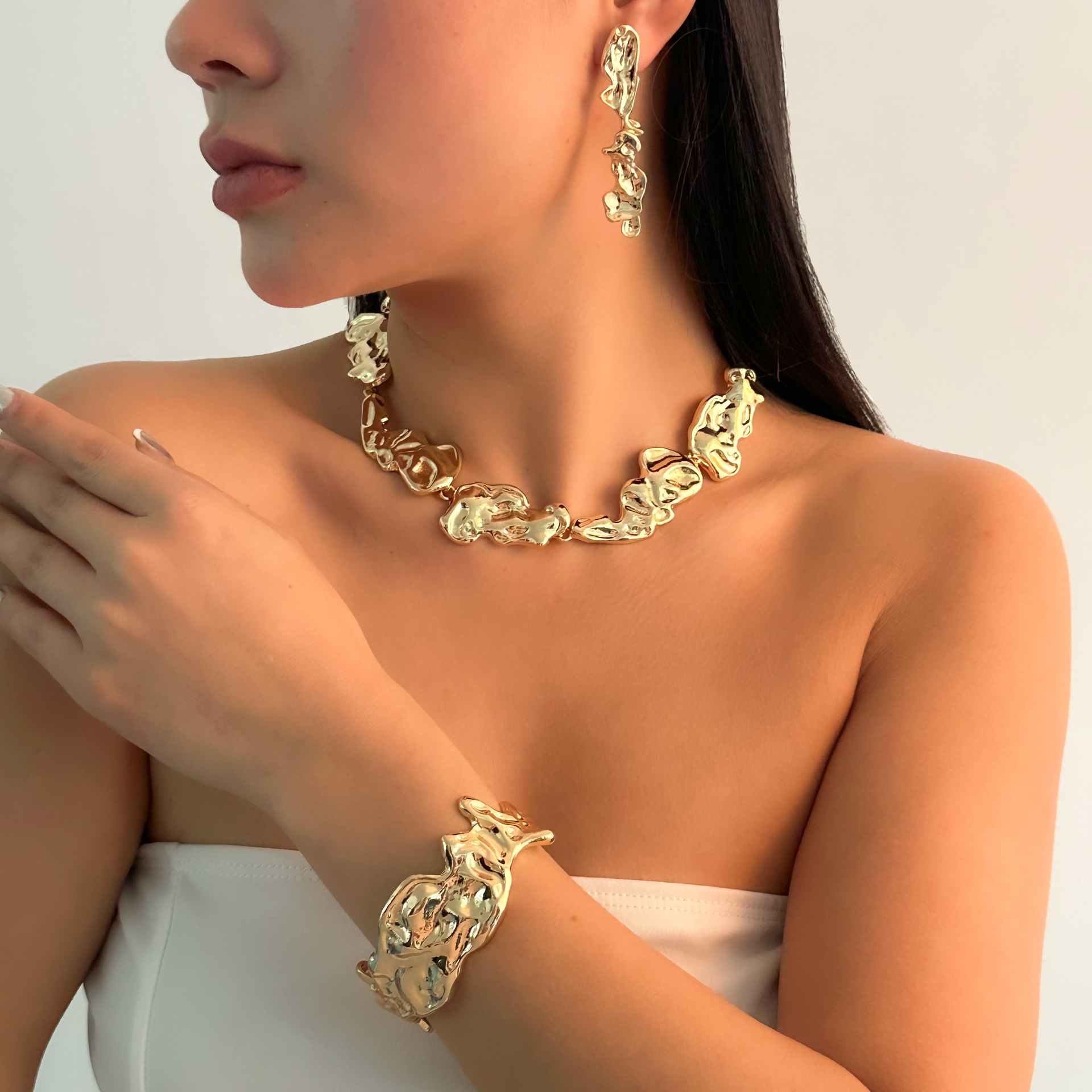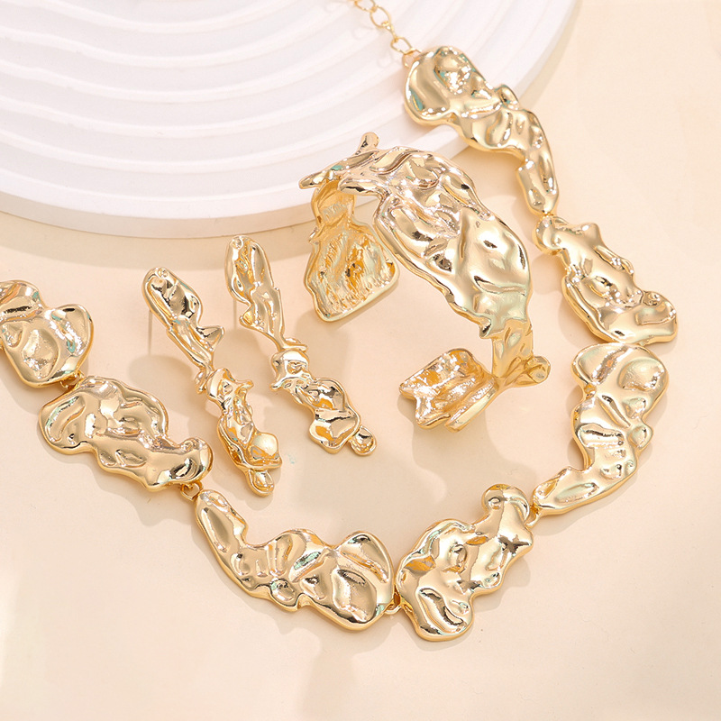 跨境欧美环保不规则熔岩金属风项链女个性夸张设计感耳环手镯套装