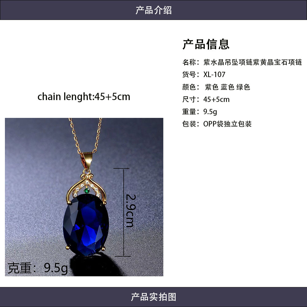 云锦跨境热卖欧美女士时尚豪华紫水晶吊坠项链紫黄晶宝石项链