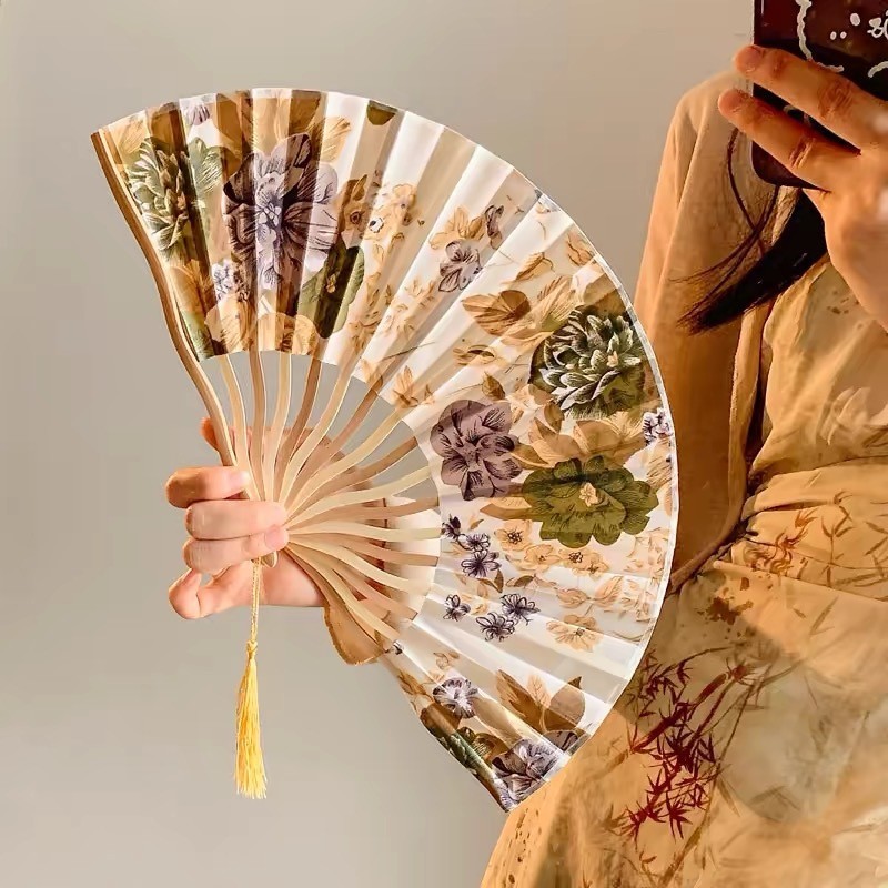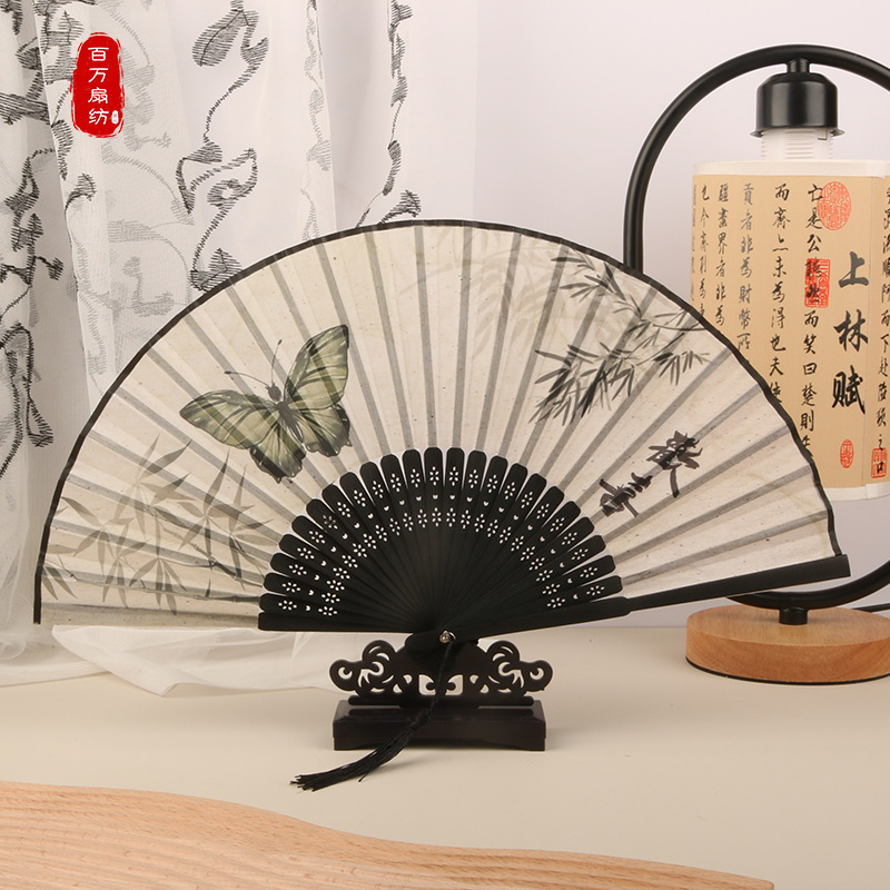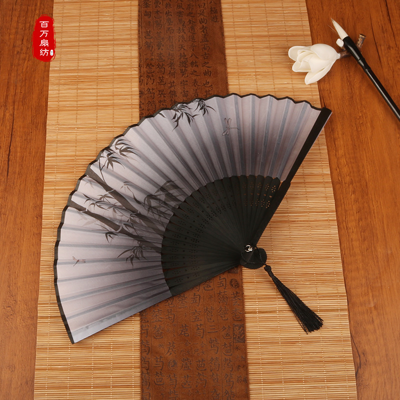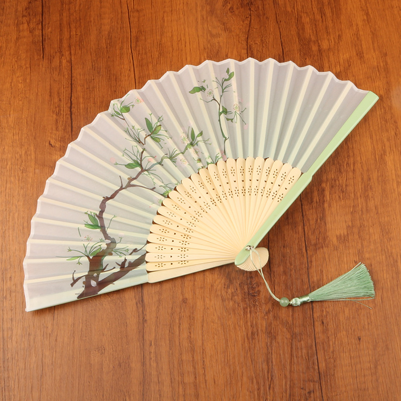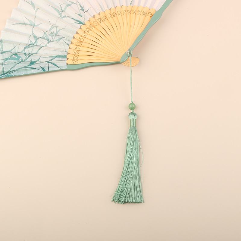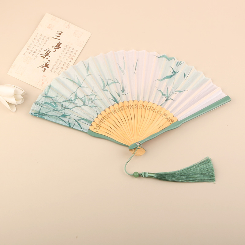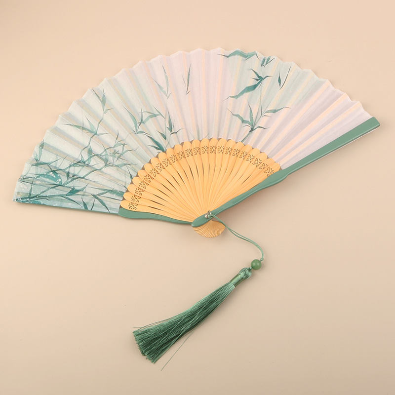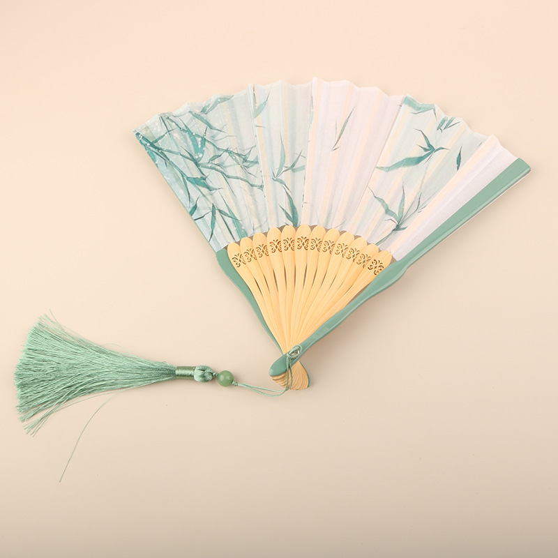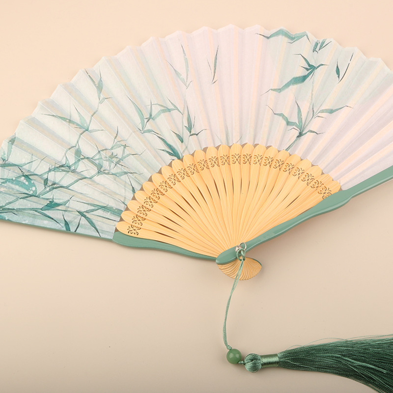 高档绿竹扇子古风中国风跳舞蹈折扇女士礼品汉服旗袍夏天折叠扇子