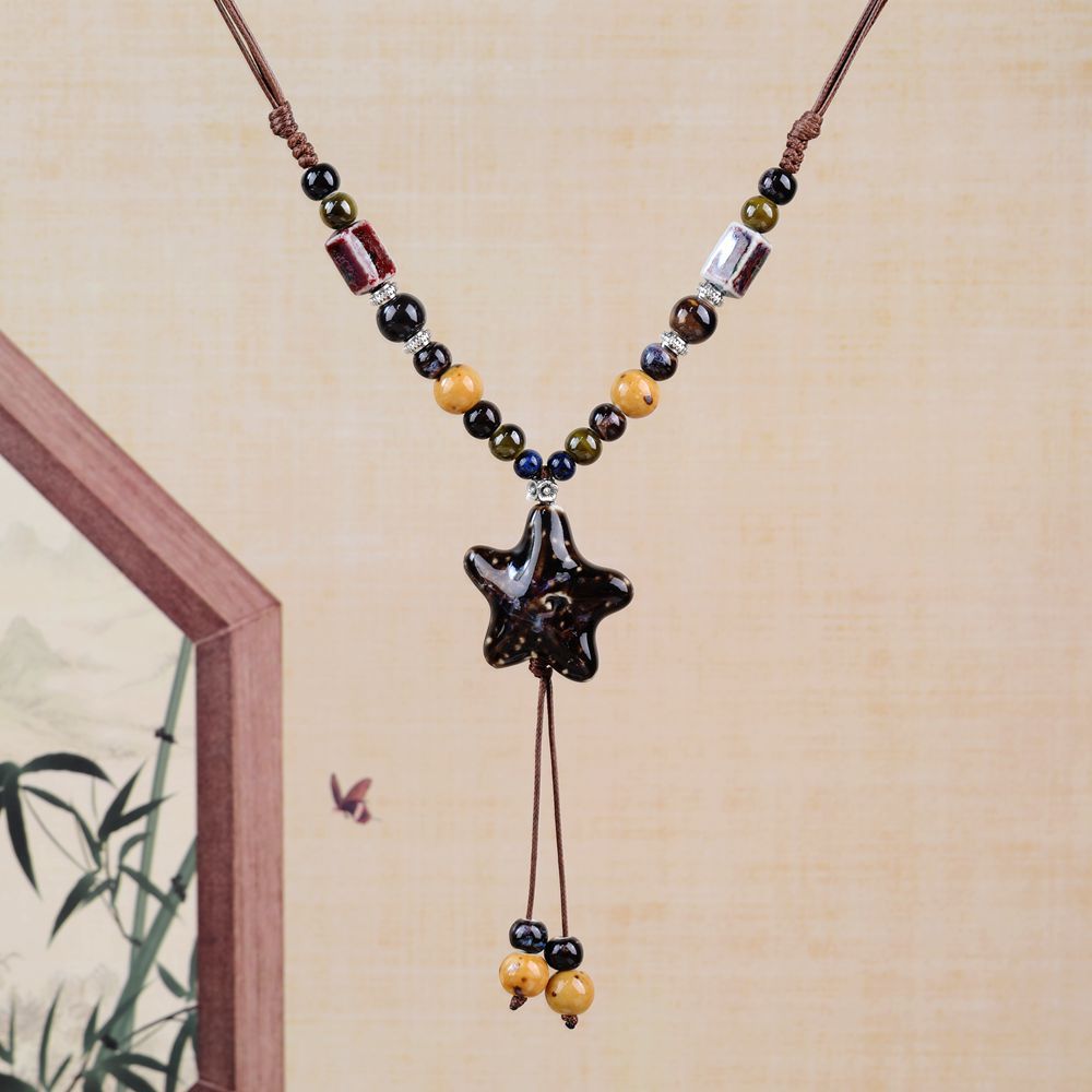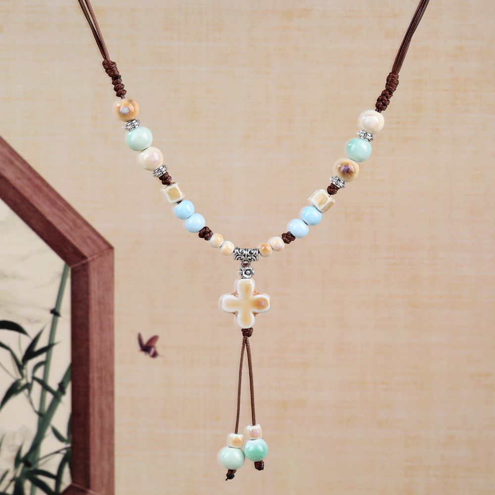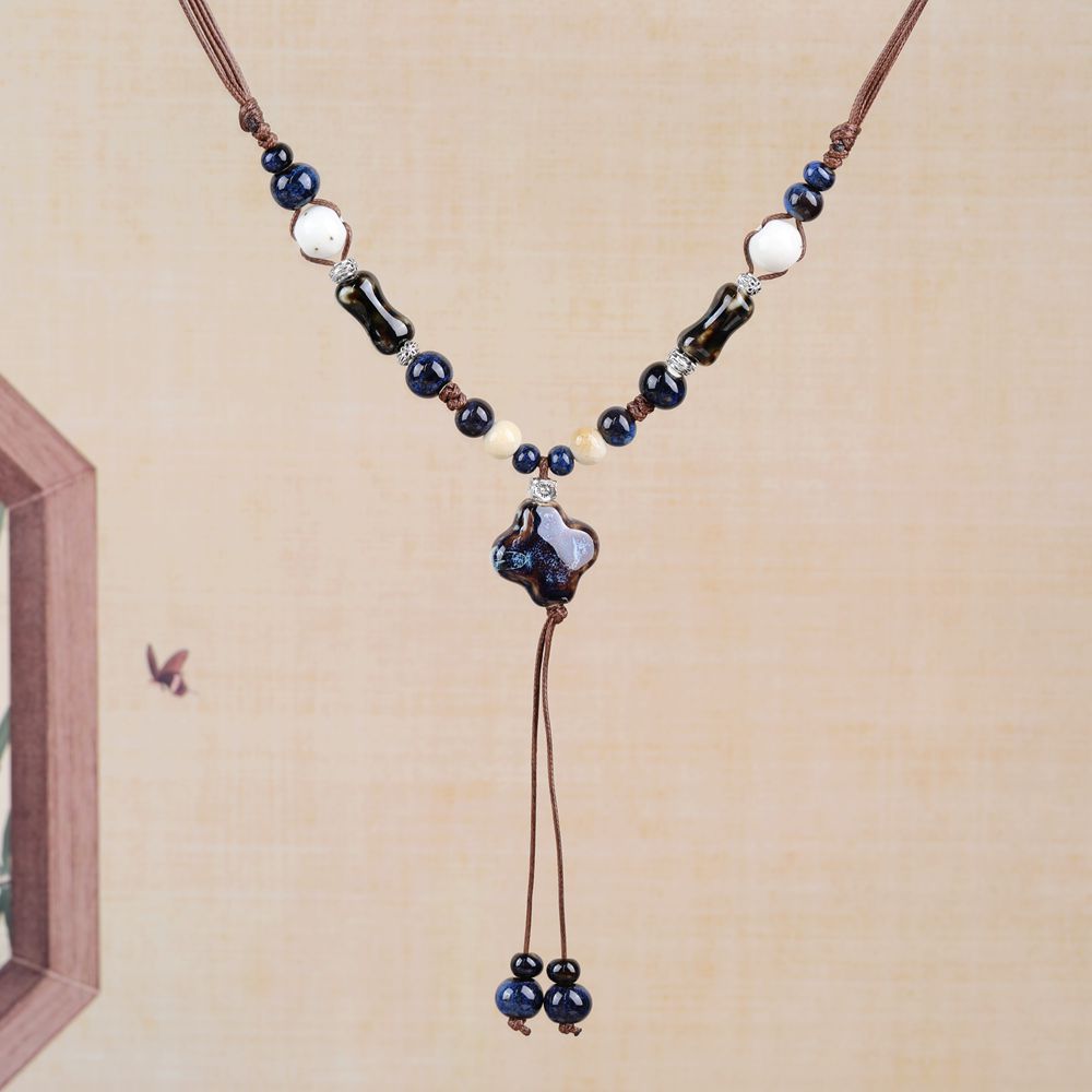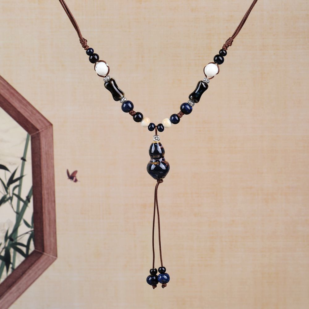 批发陶瓷毛衣链 复古民族风服装配饰 几何型秋冬毛衣项链地摊货源