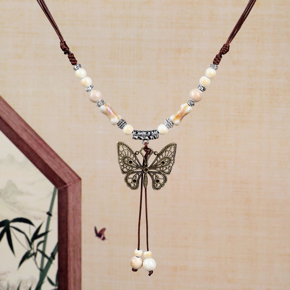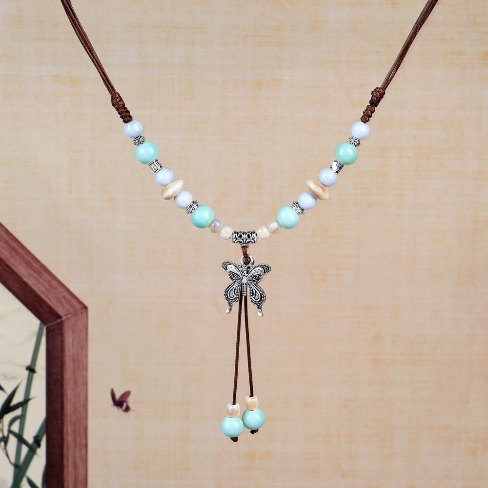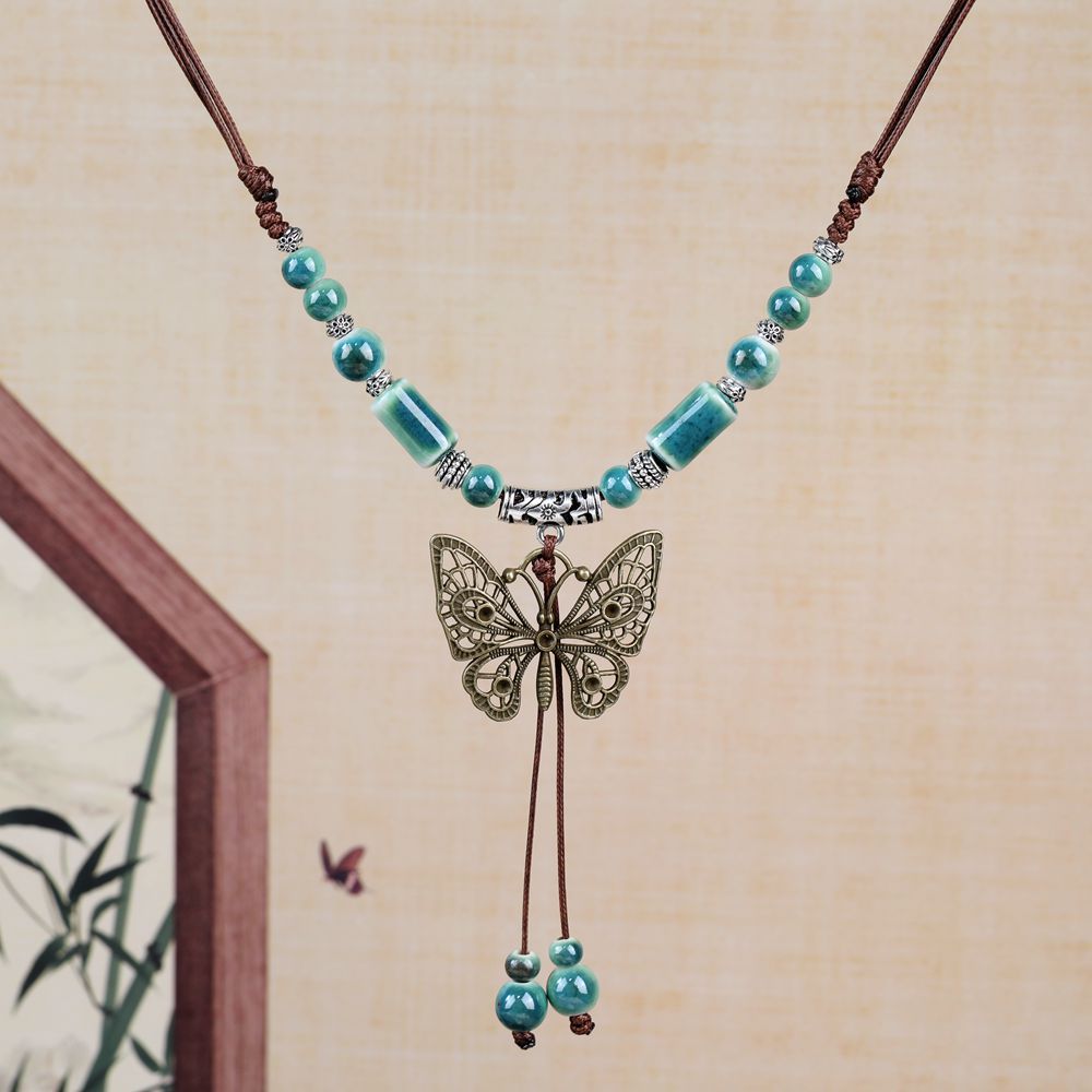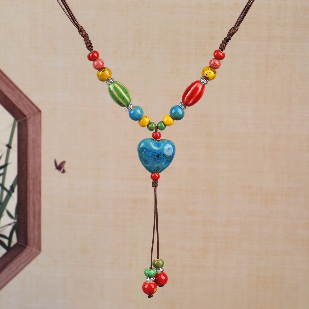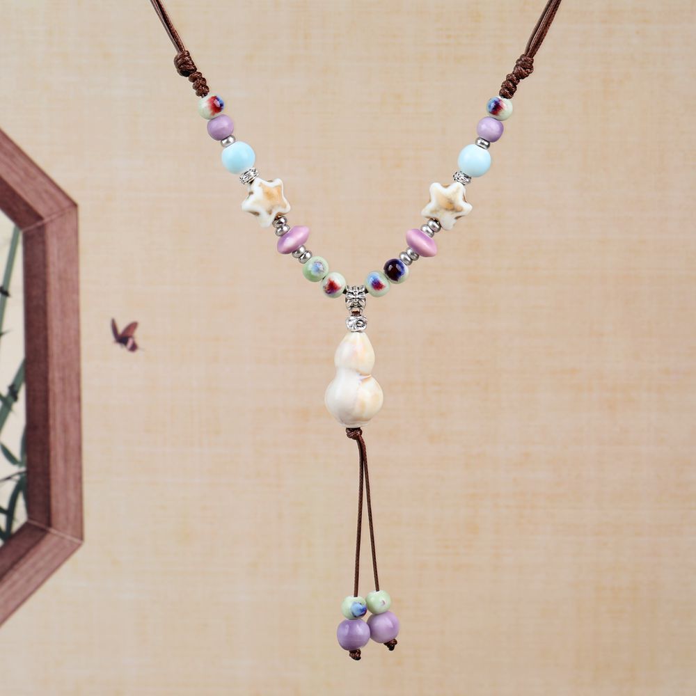 批发陶瓷毛衣链 复古民族风服装配饰 几何型秋冬毛衣项链地摊货源