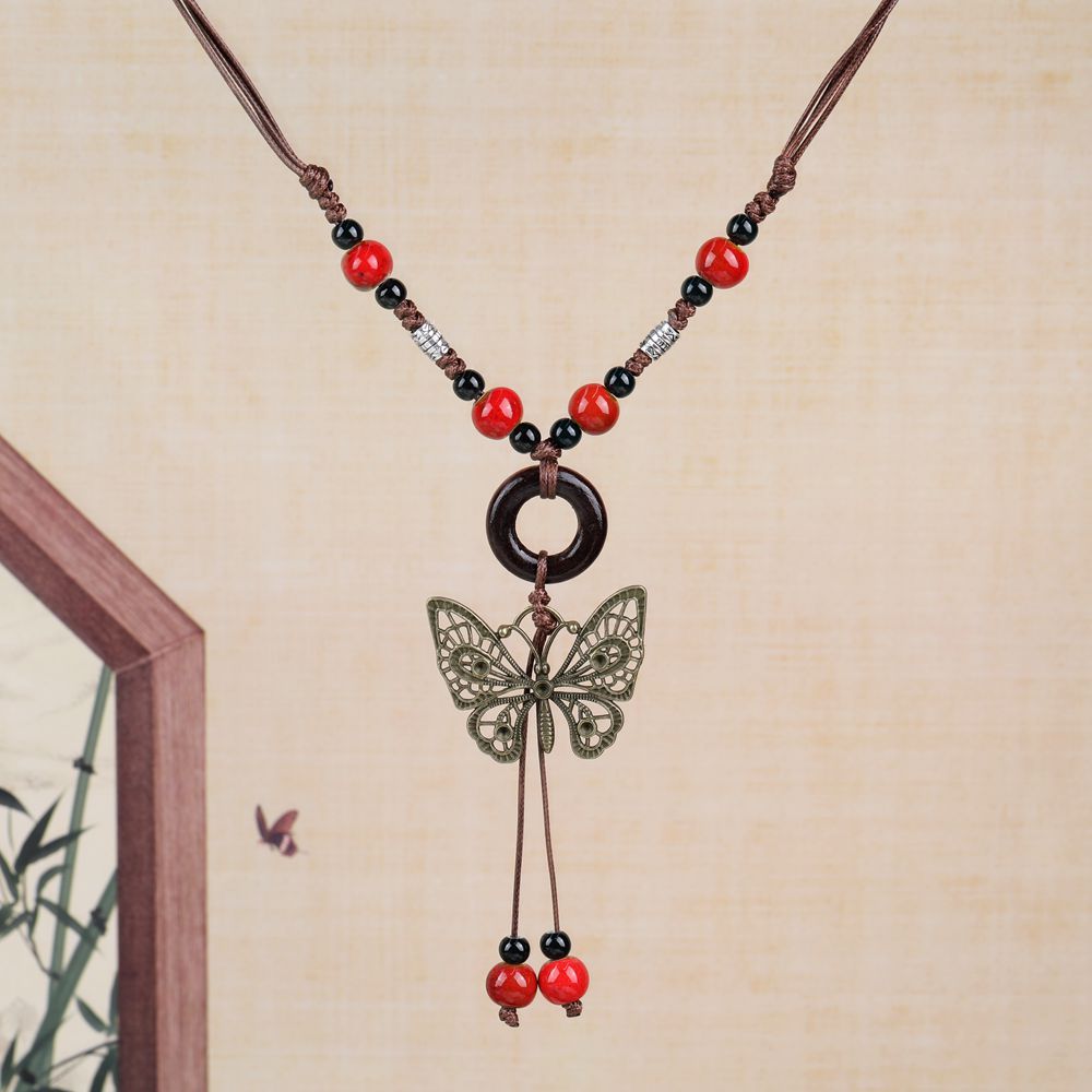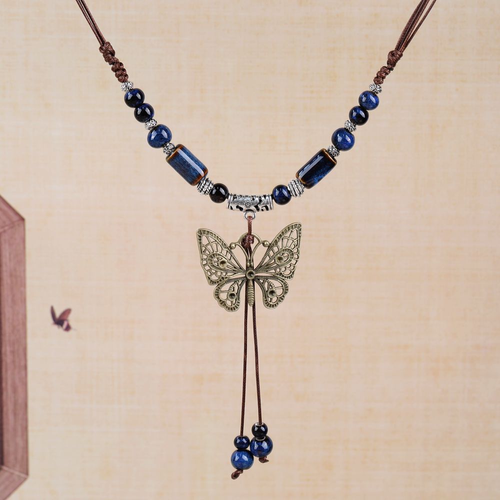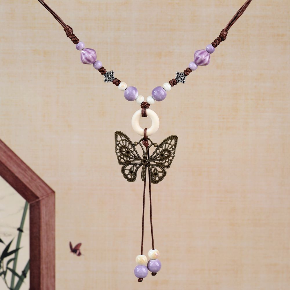 厂家货源批发中式民族风蝴蝶项链小众古风长款毛衣链编织锁骨链潮