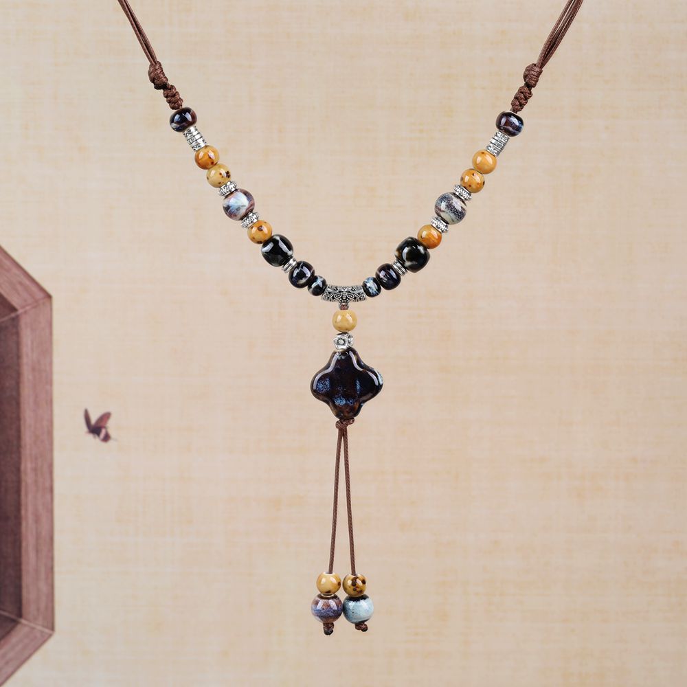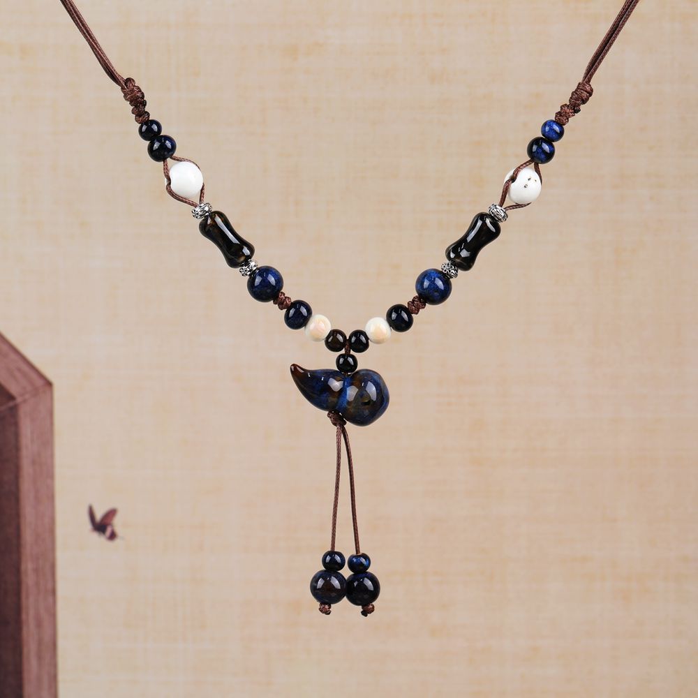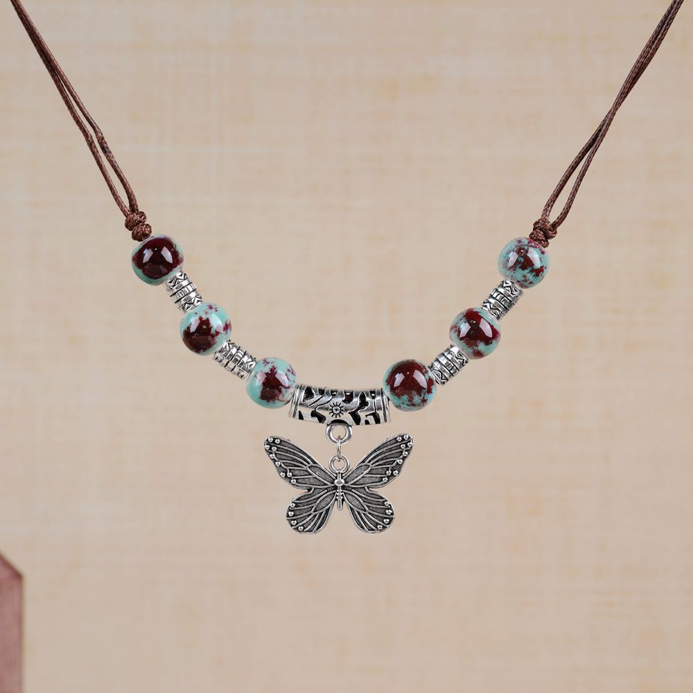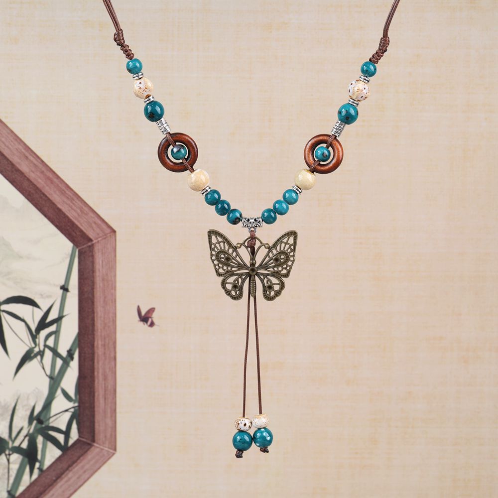 厂家货源批发中式民族风蝴蝶项链小众古风长款毛衣链编织锁骨链潮