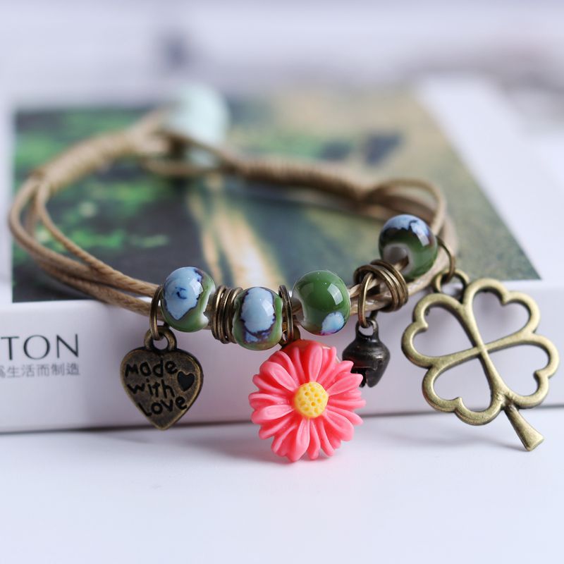 情侣手链陶瓷挂件 复古民族风手链 女雏菊手链小瓷珠diy女生饰品