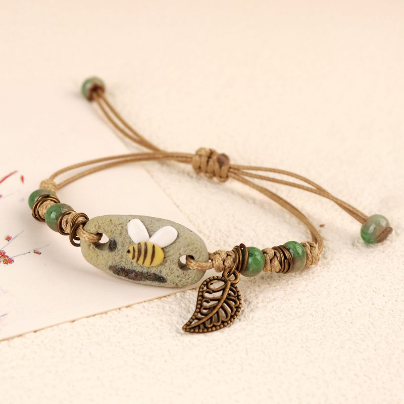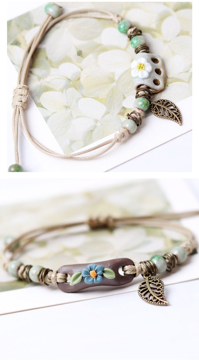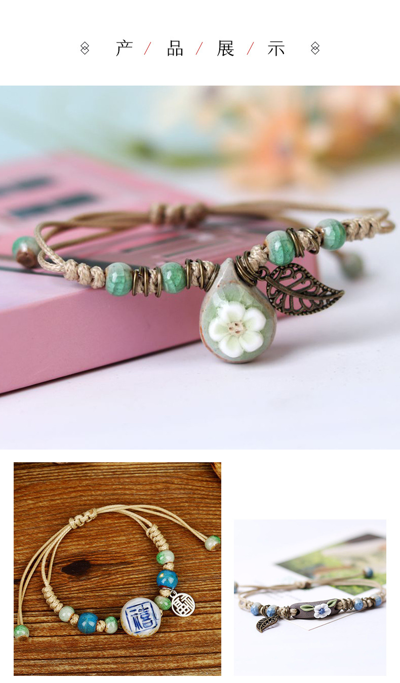 小清新叶子陶瓷珠手链 女款景德镇饰品 送礼闺蜜情侣学生地摊货