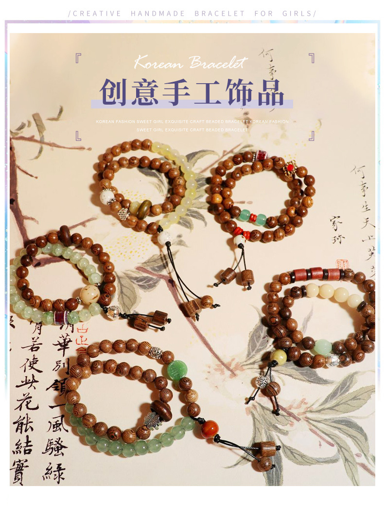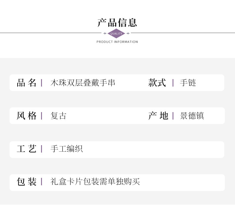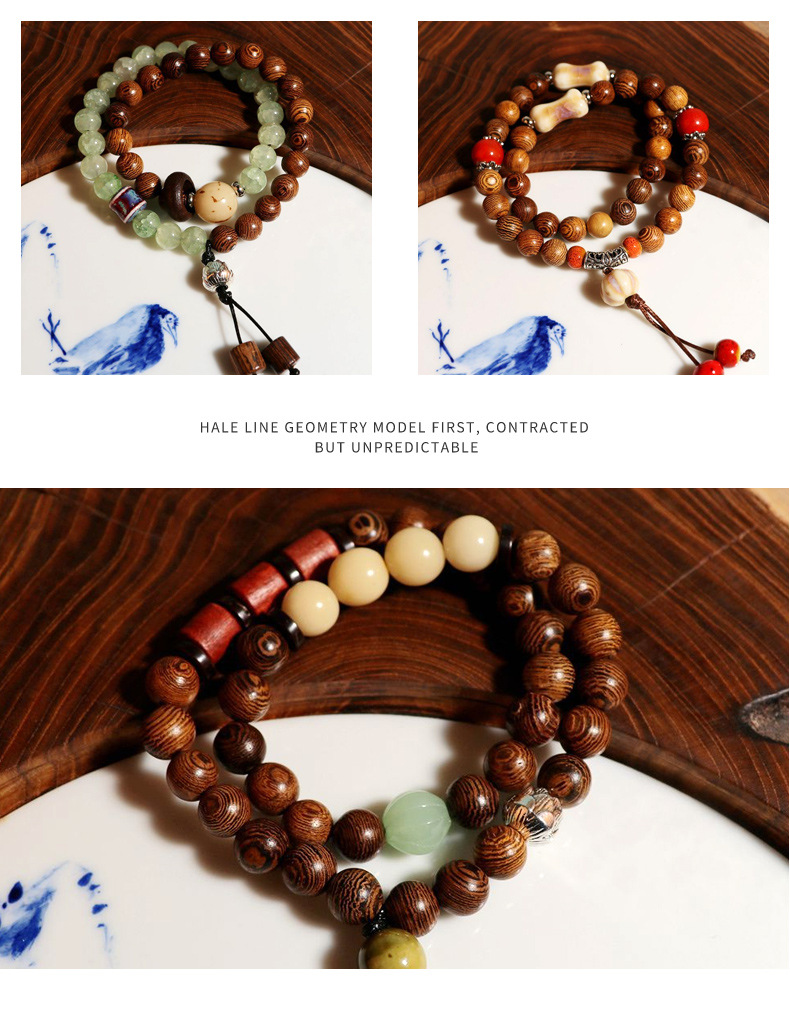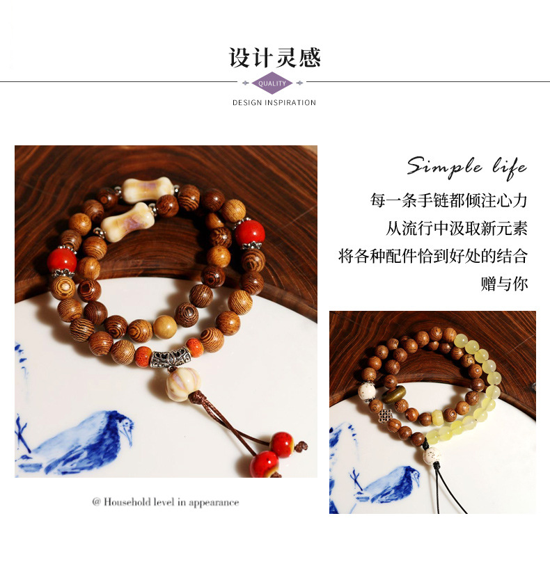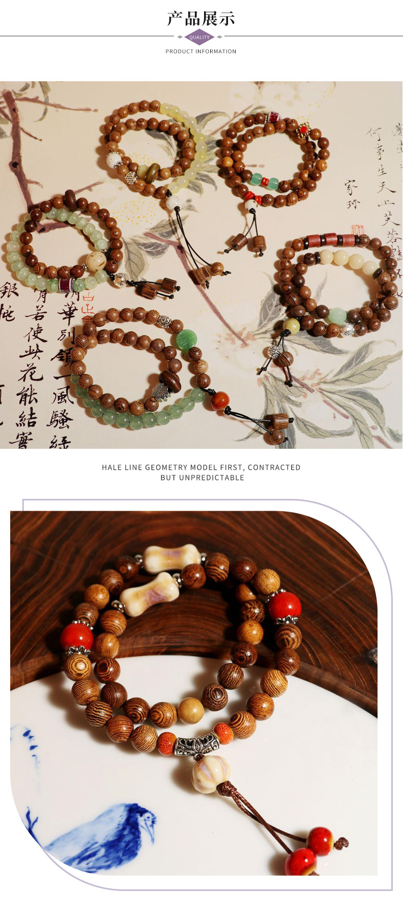 青山灵隐厂家货源木珠双层叠戴手串双圈文艺复古新中式直播直供