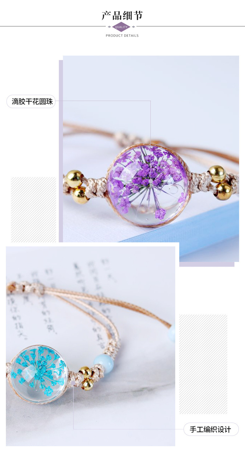 花落满天星干花植物编绳情侣手链闺蜜礼物十元模式地摊货源现货