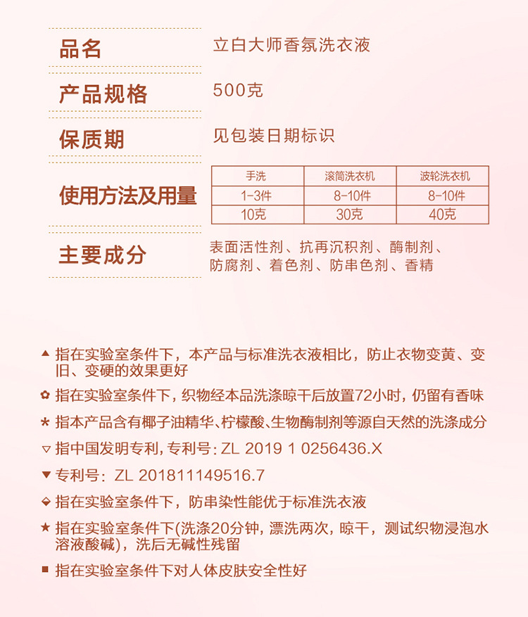 立白500克香氛大师洗衣液玫瑰持久留香护色洗衣液批量集采包邮