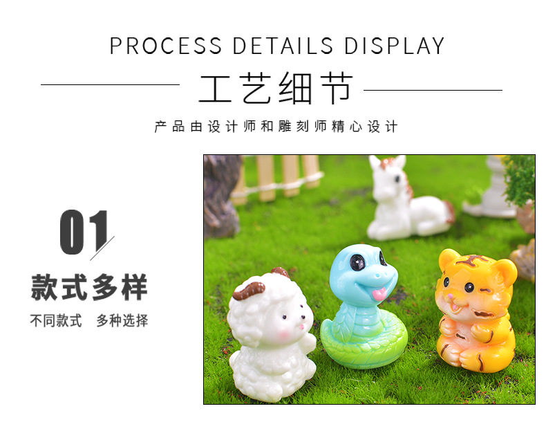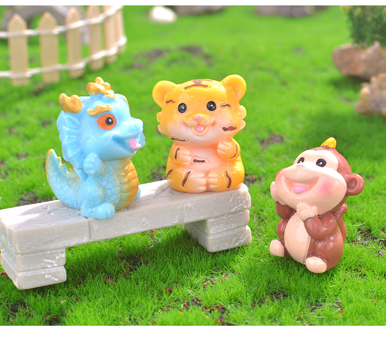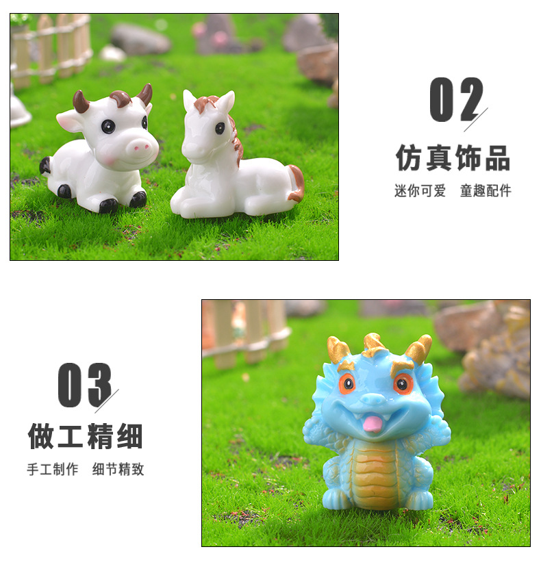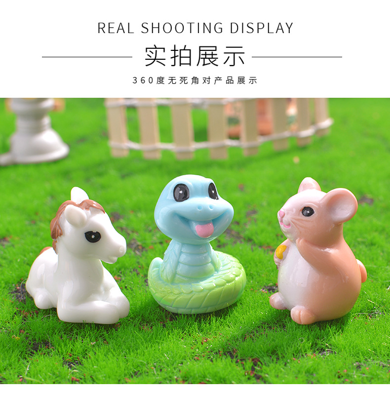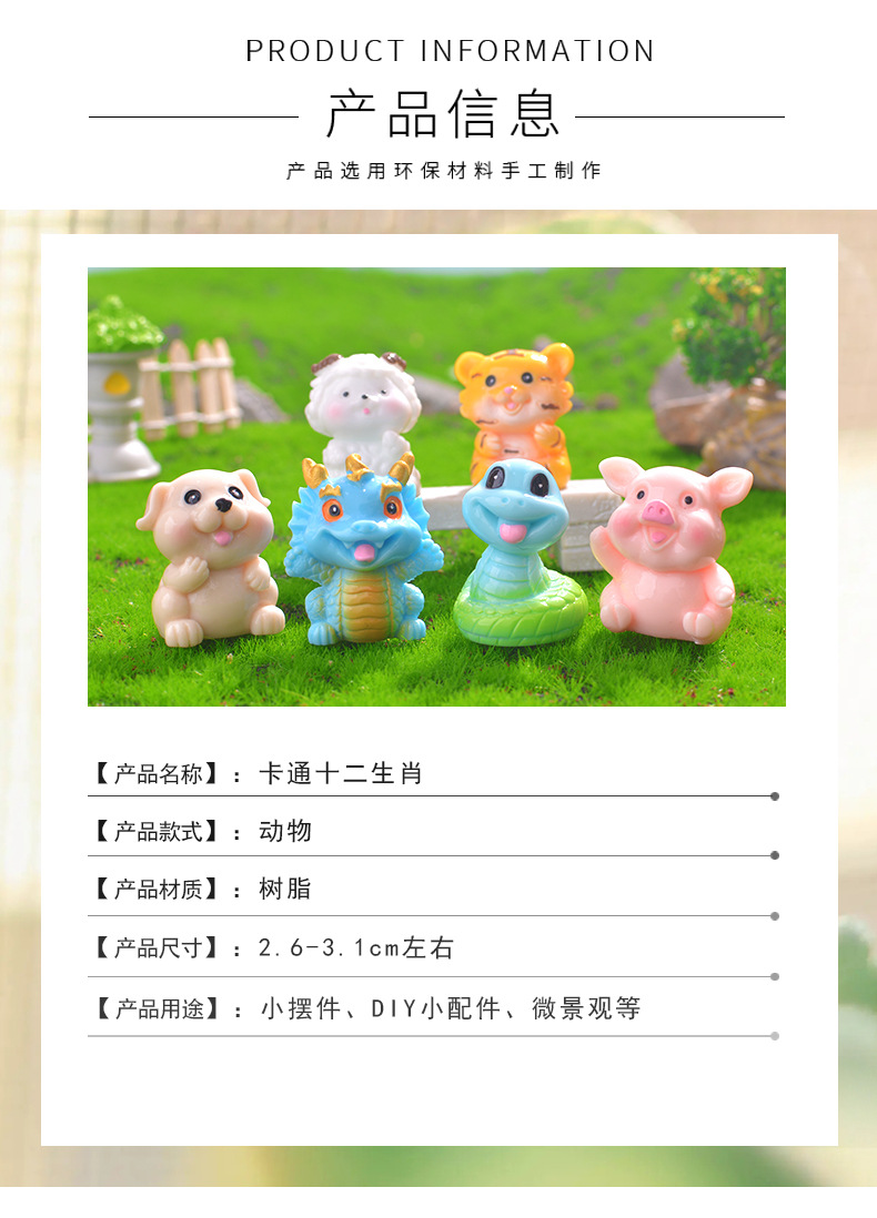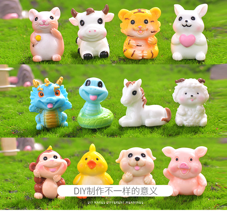十二生肖微景观摆件卡通diy生肖小摆件 龙虎蛇猪猴鸡兔树脂工艺品