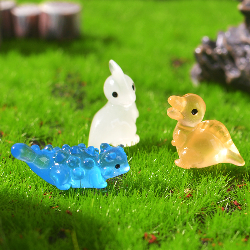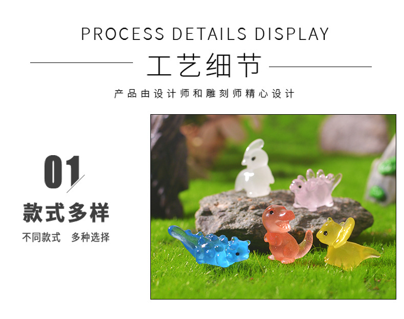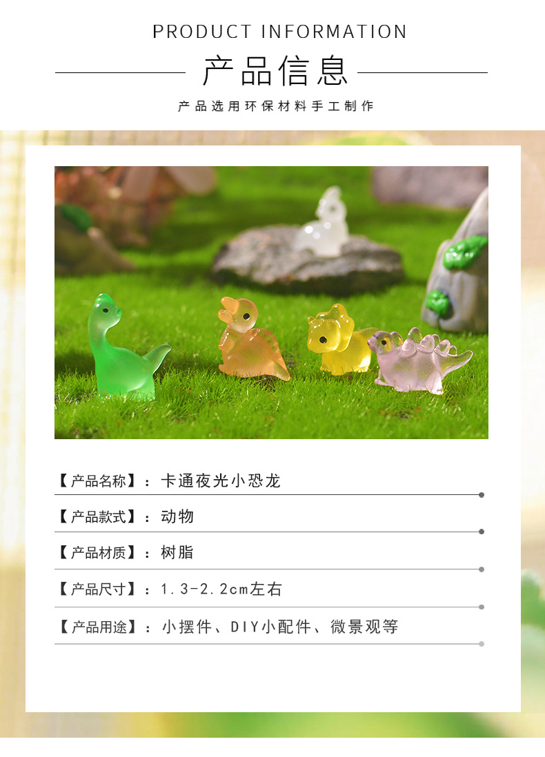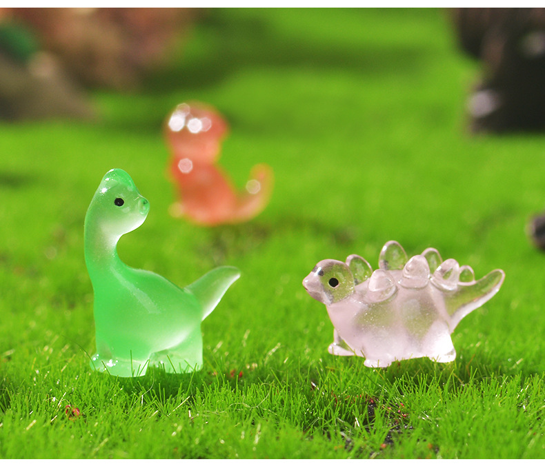 跨境夜光可爱恐龙微景观园艺小摆件 DIY卡通透明小恐龙树脂配件