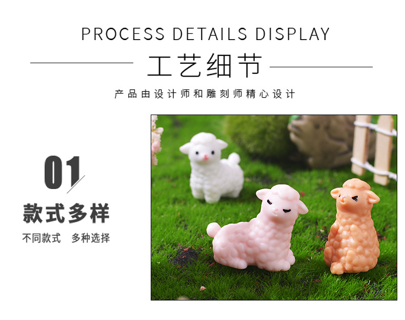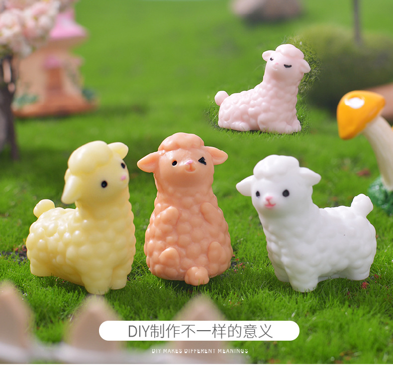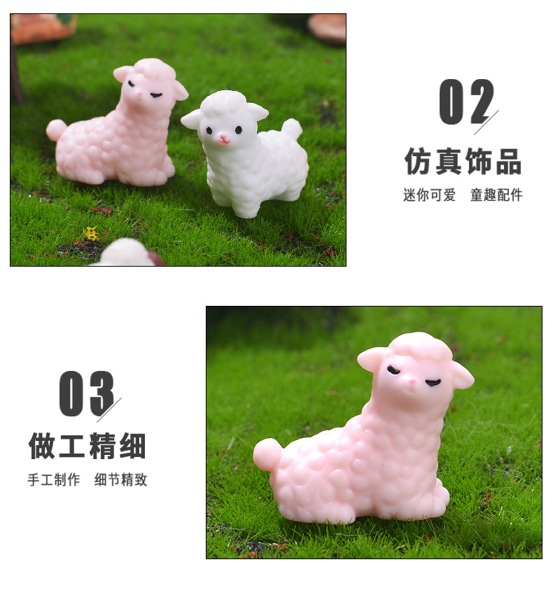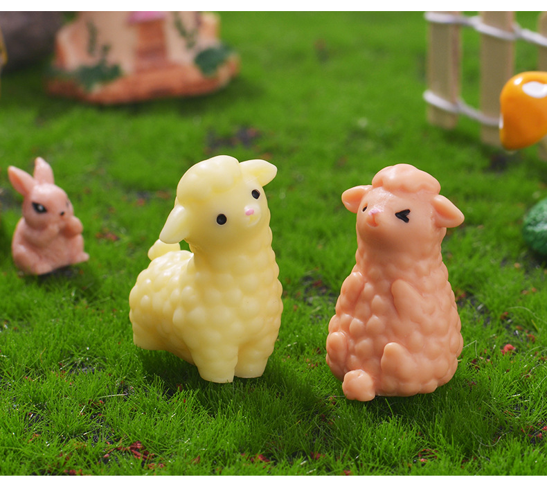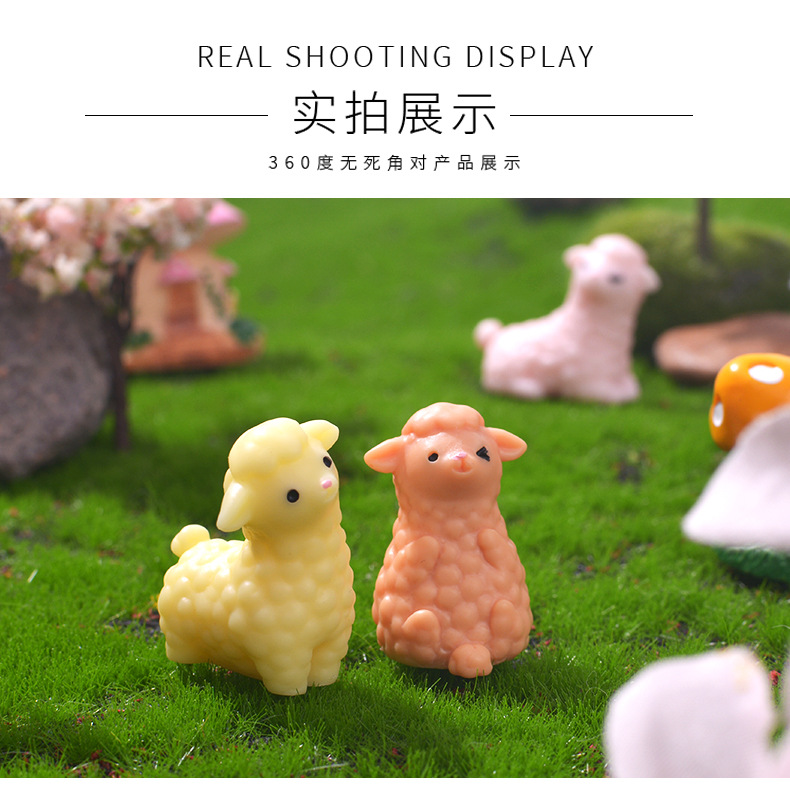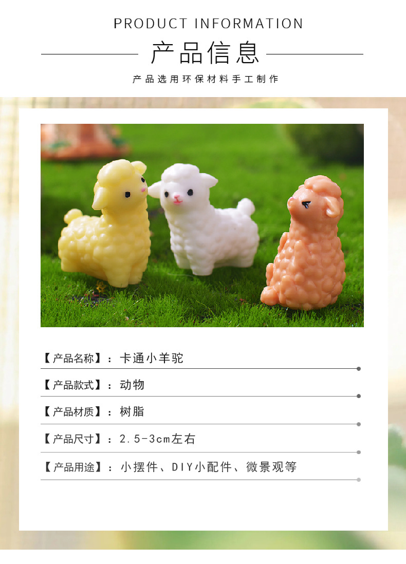 微景观可爱卡通羊驼摆件仿真动物园林造景配件树脂工艺装饰品摆件