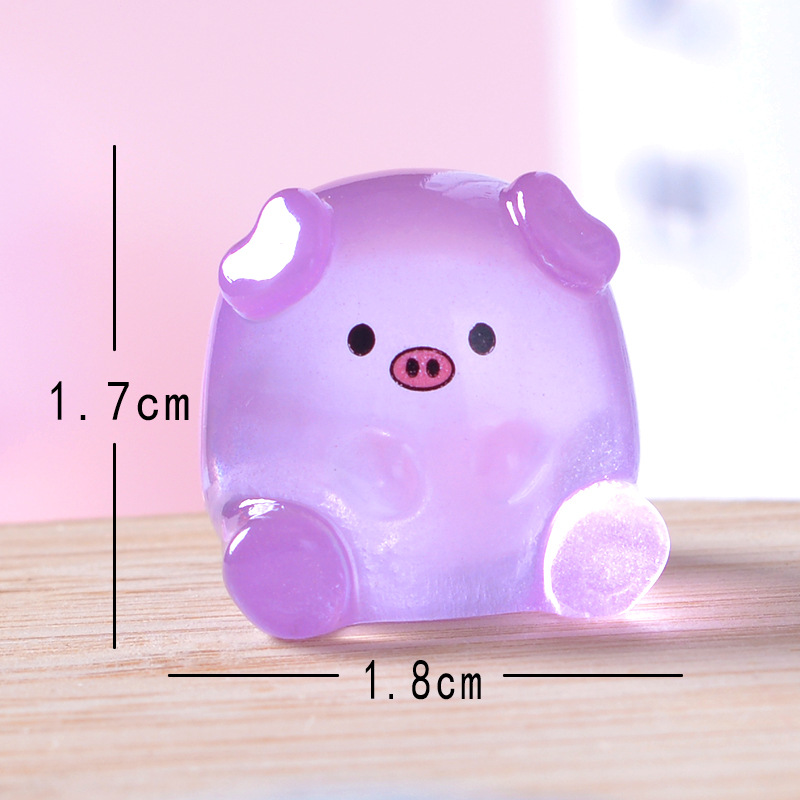 跨境可爱夜光堆堆小猪微景观园艺小摆件 卡通DIY透明小猪树脂配件