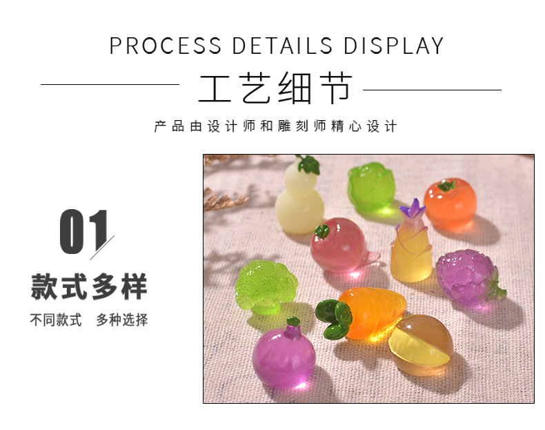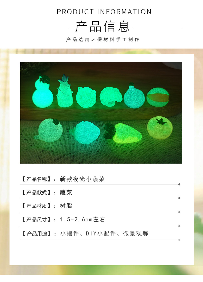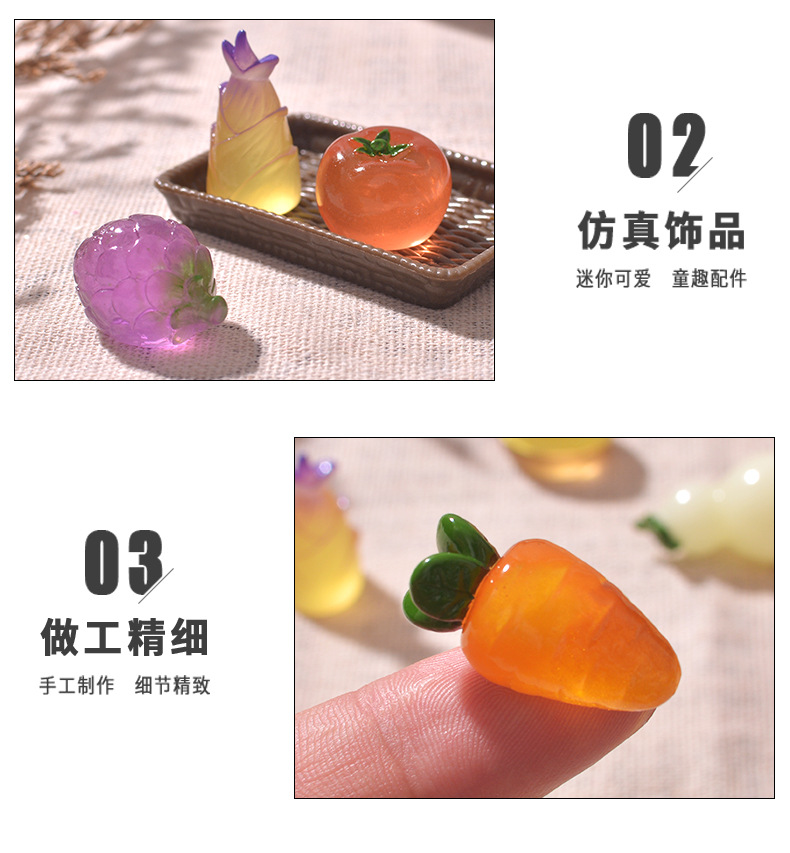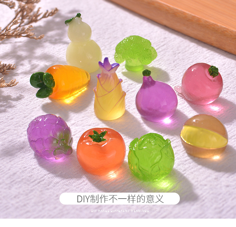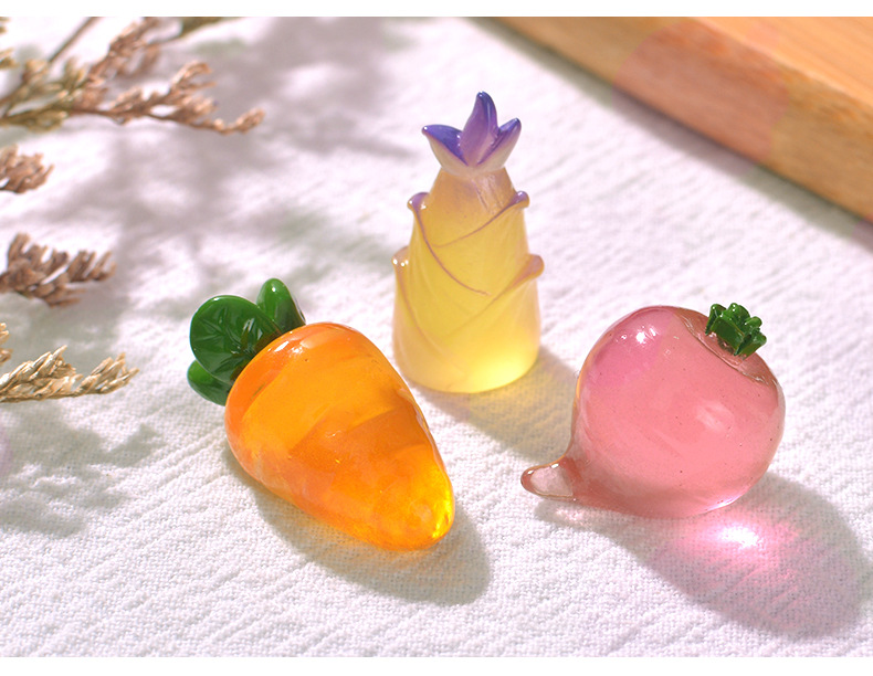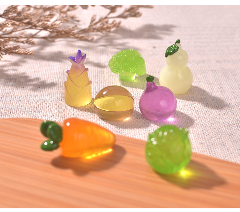 跨境小蔬菜微景观diy小摆件 夜光蔬菜竹笋板栗包菜树脂工艺品摆件