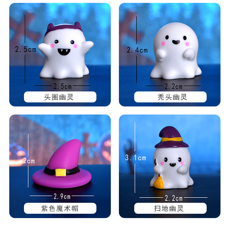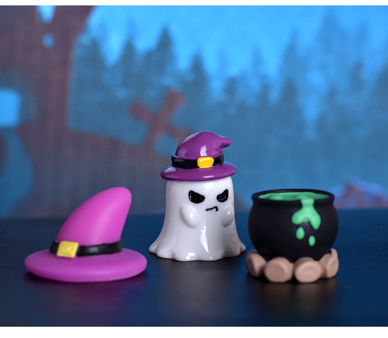 跨境万圣节巫师帽幽灵系列微景观园艺树脂小摆件南瓜幽灵鬼节配件