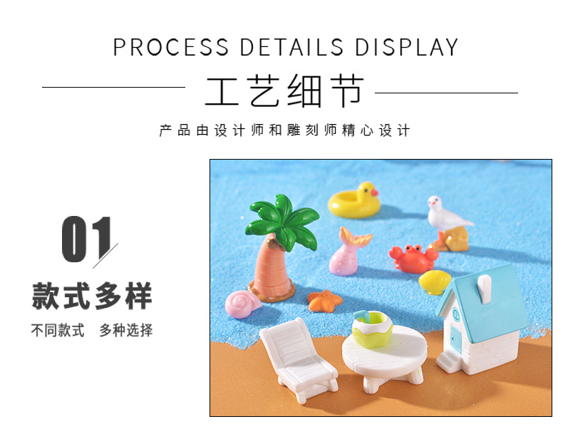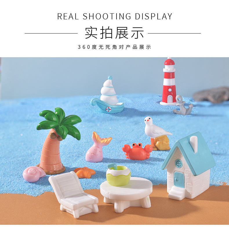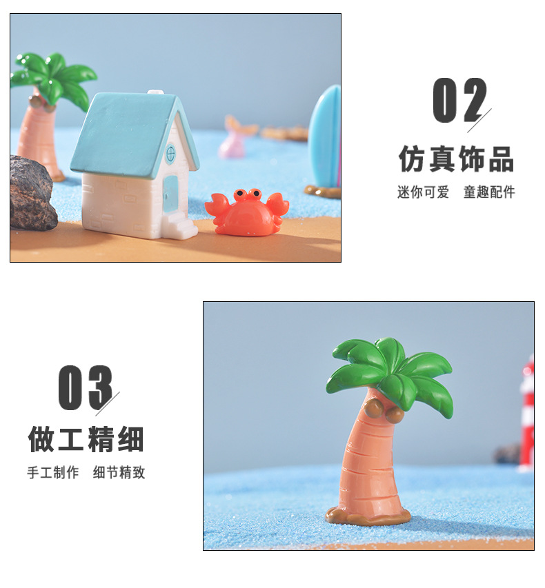跨境微景观沙滩树脂小摆件 灯塔海滩风情鱼缸水族馆DIY微景观摆件