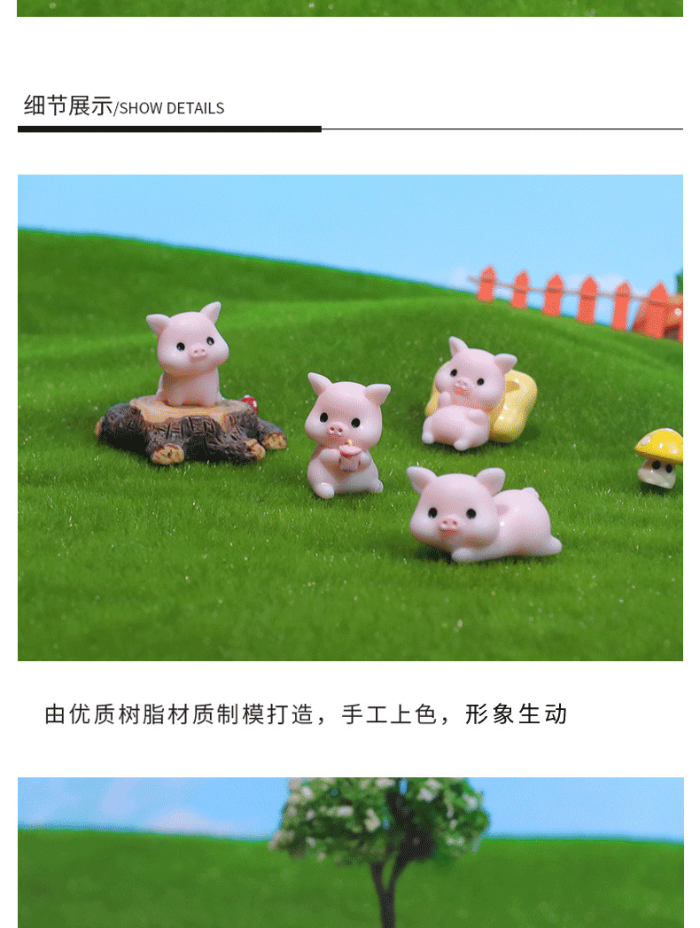 微景观小猪树脂工艺品可爱仿真动物家居桌面装饰车内饰品摆件批发