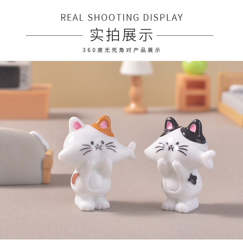 跨境卡通可爱偷吃小猫微景观桌面装饰小摆件 呆萌小猫DIY小配件