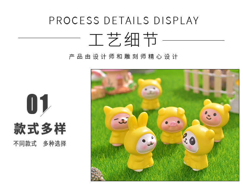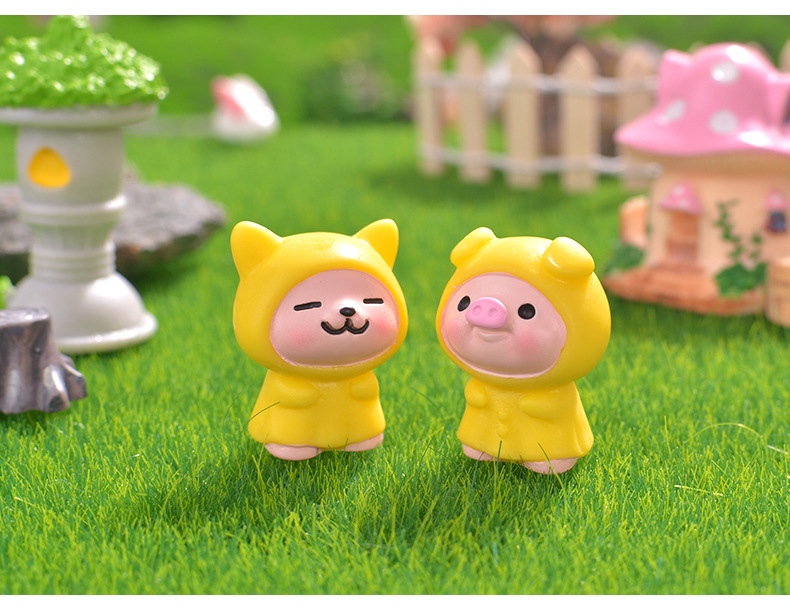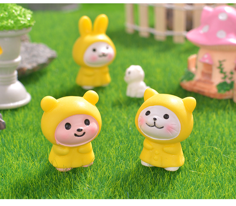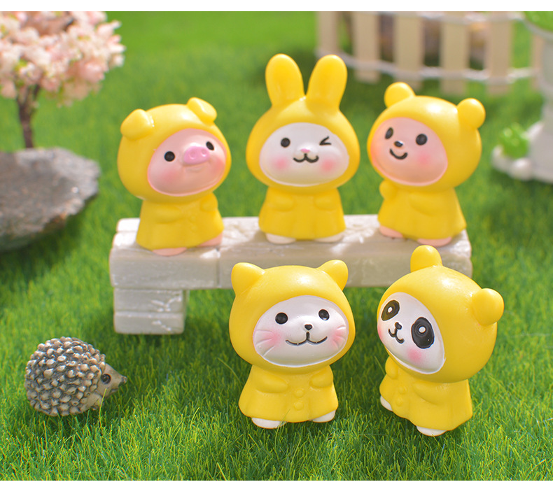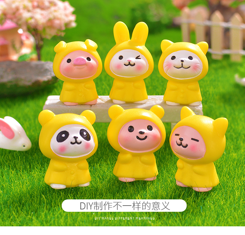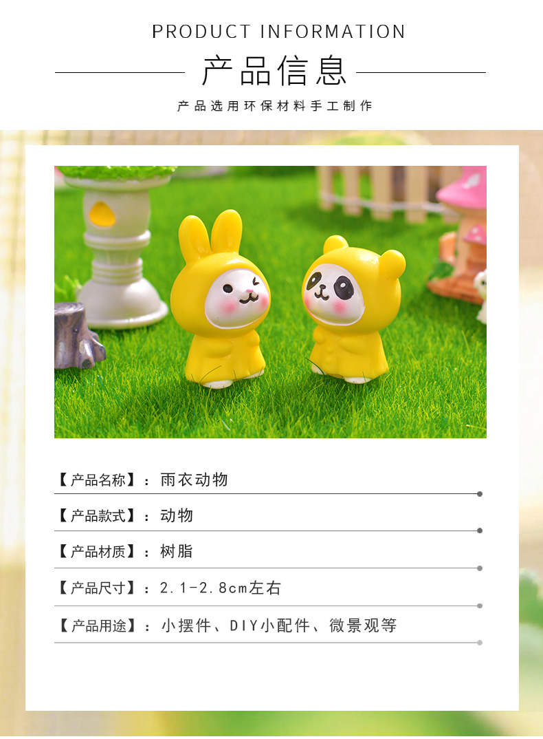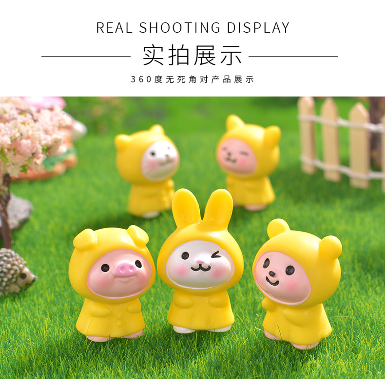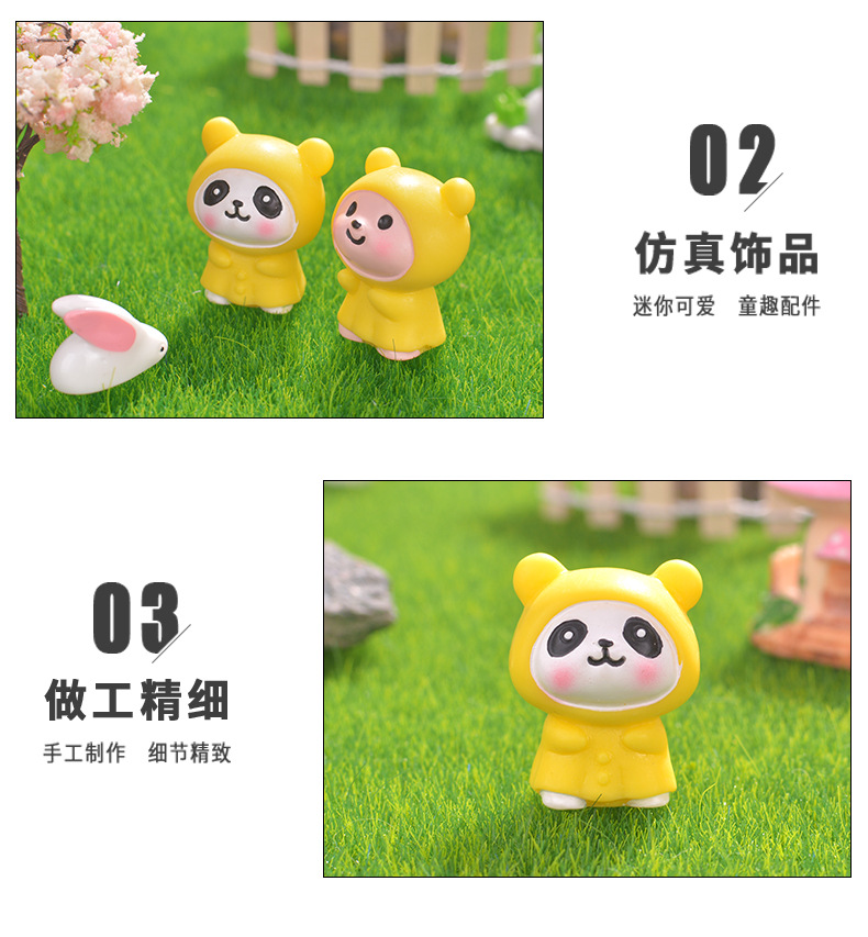 跨境卡通雨衣动物微景观园艺盆栽摆件熊猫小猪小兔树脂工艺品摆件