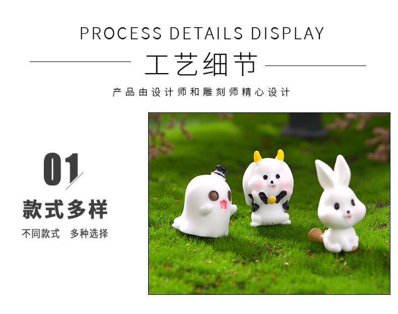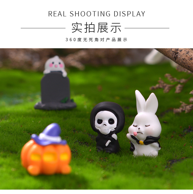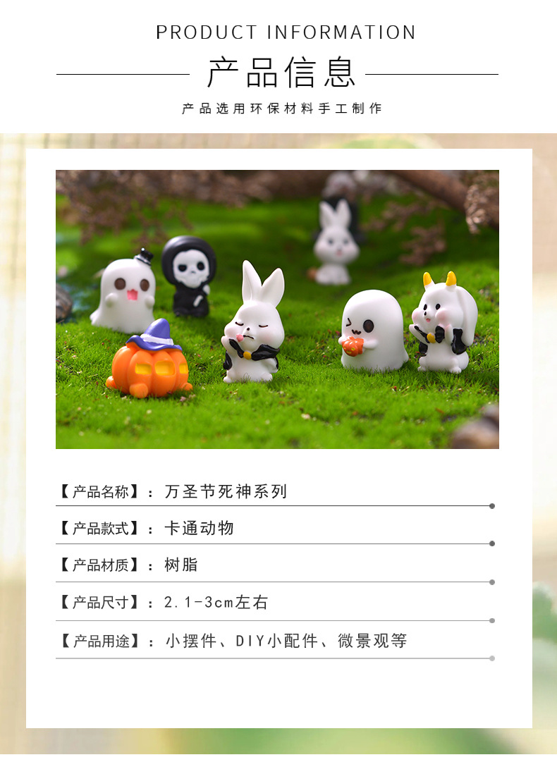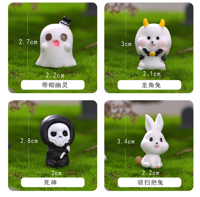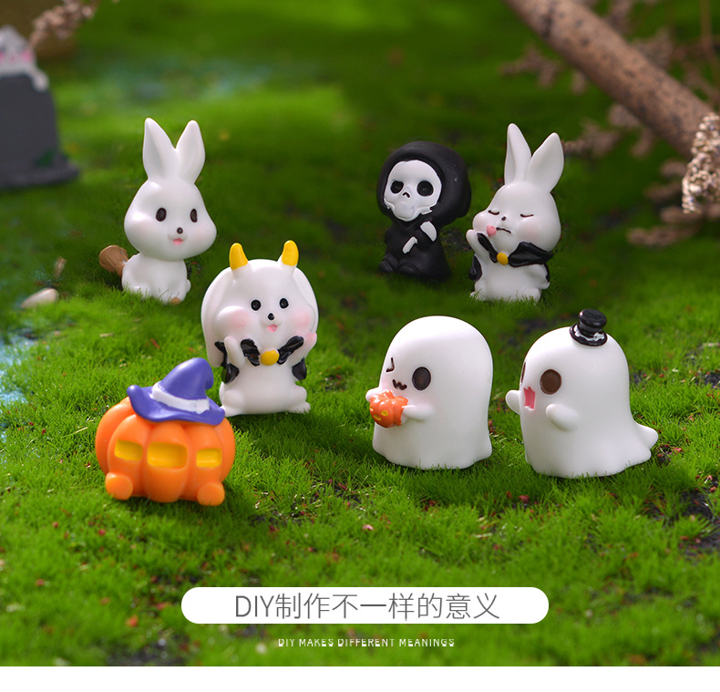 跨境万圣节死神幽灵系列微景观盆景小摆件迷你可爱小兔子幽灵摆件
