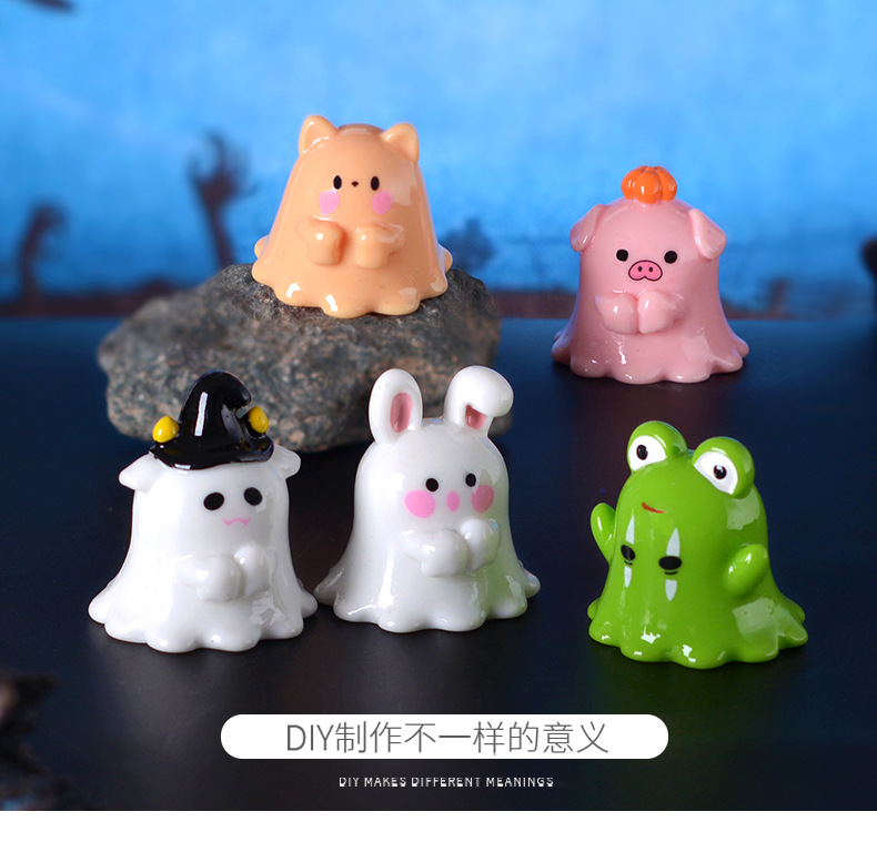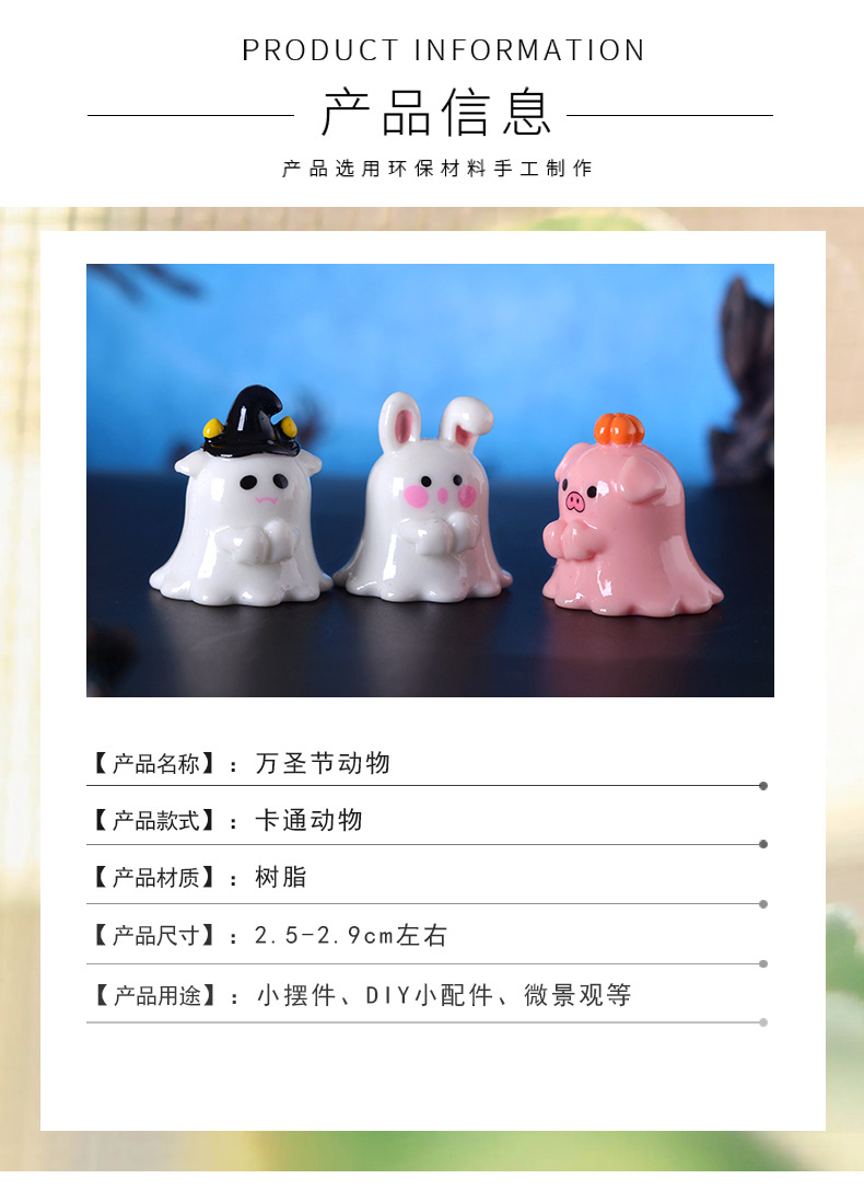 跨境卡通万圣节小动物苔藓微景观小摆件 可爱呆萌幽灵猪兔子配件