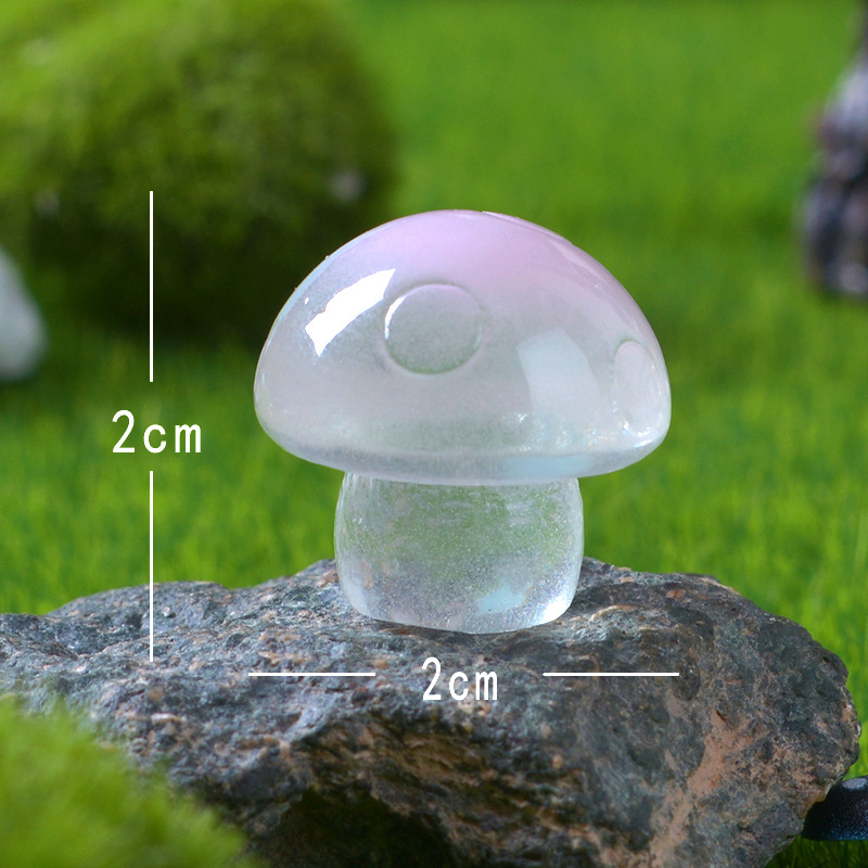 跨境夜光摆件可爱迷你蘑菇微景观园艺小摆件透明小蘑菇树脂工艺品