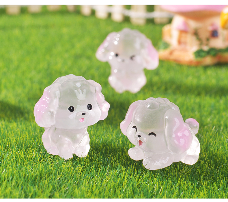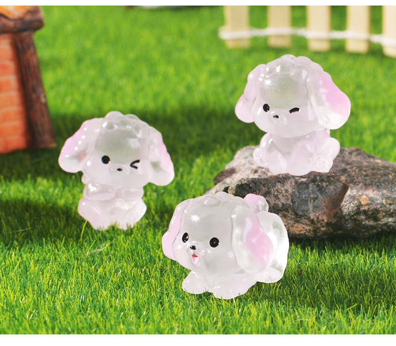 微景观创意可爱卡通透明夜光粉色小狗园艺造景装饰品树脂小摆件