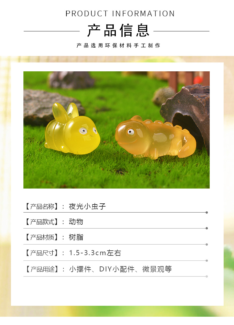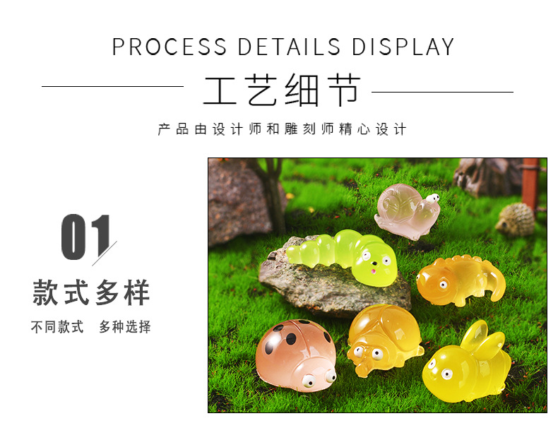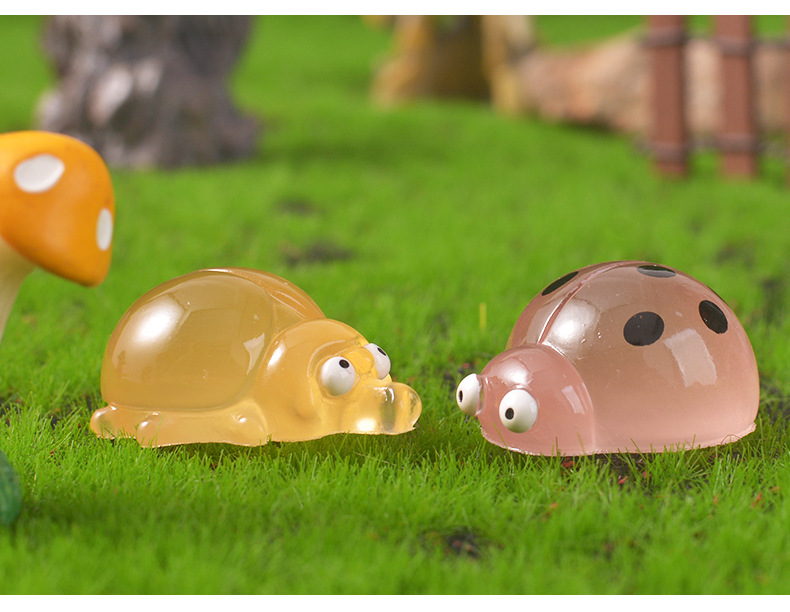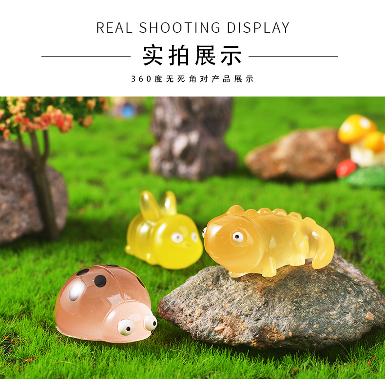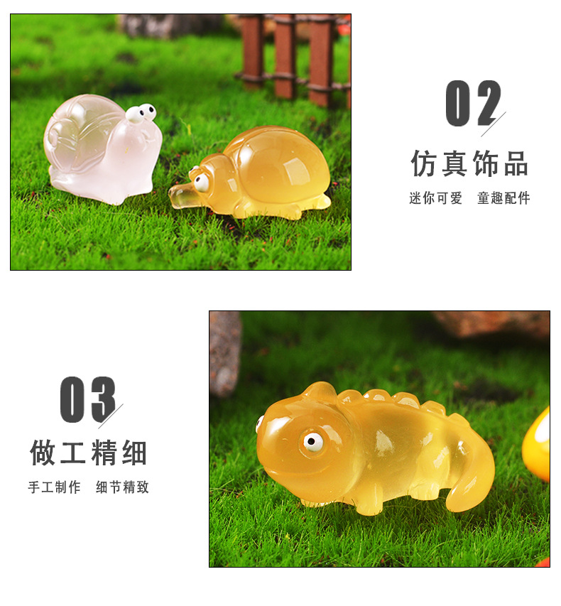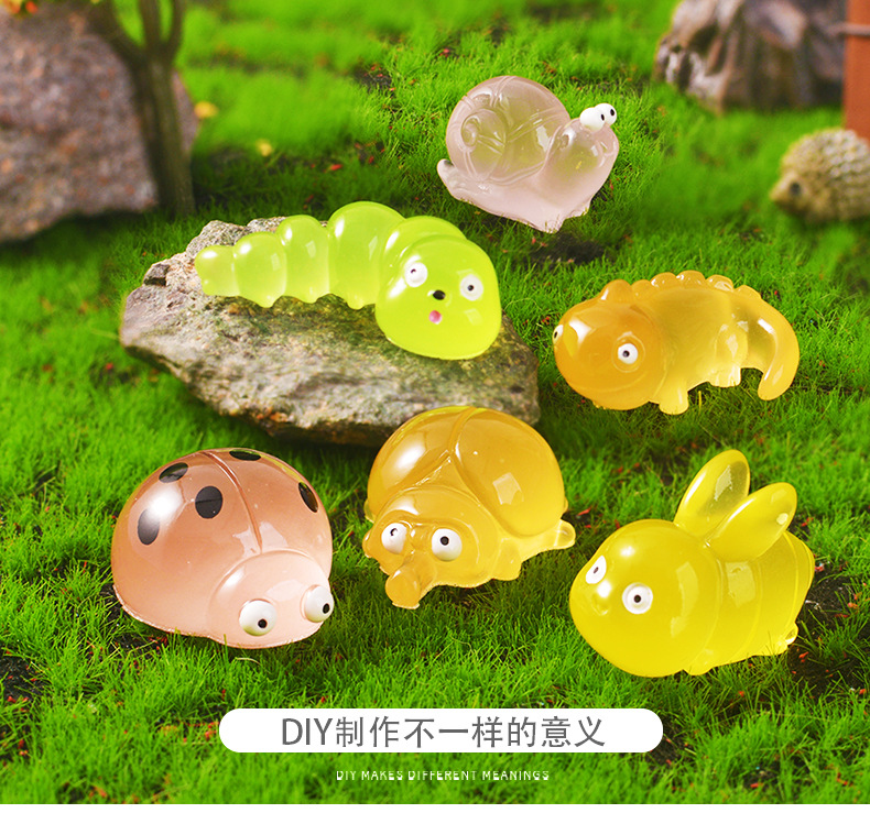 跨境微景观摆件园艺夜光小摆件 可爱动物瓢虫毛毛虫蜗牛树脂配件