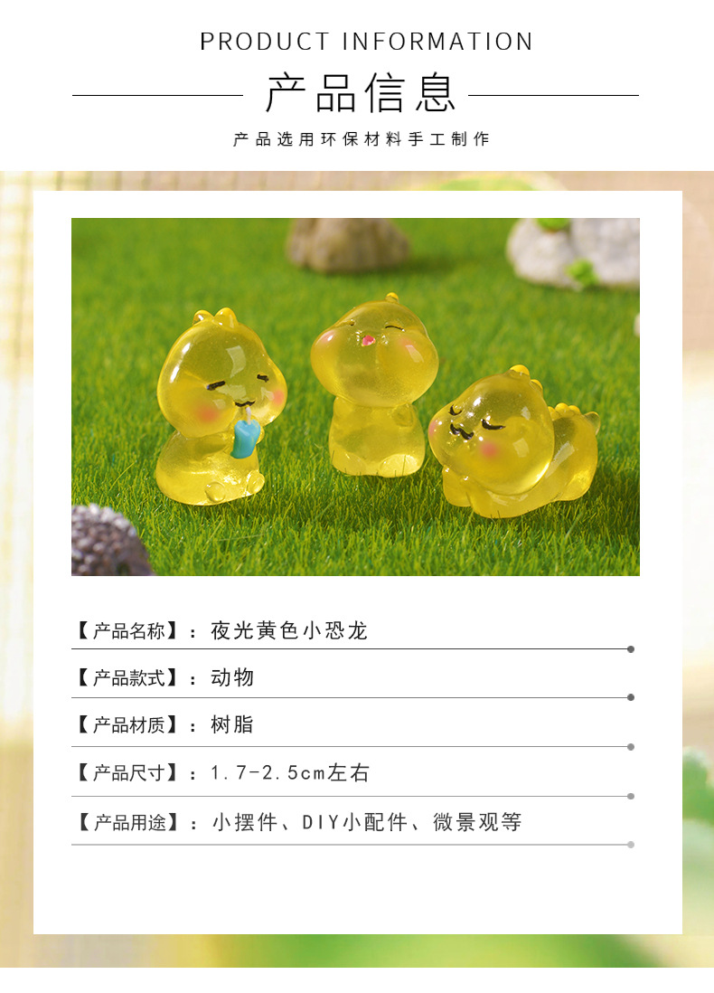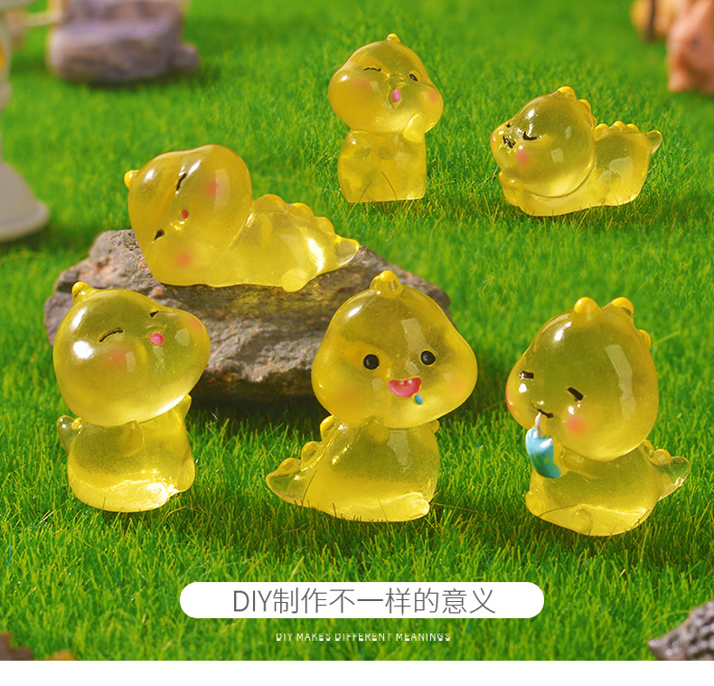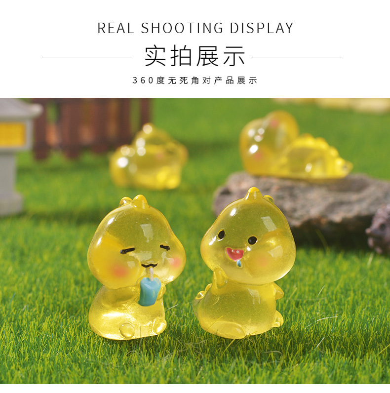 跨境可爱夜光恐龙微景观园艺小摆件 卡通DIY黄色恐龙树脂夜光配件