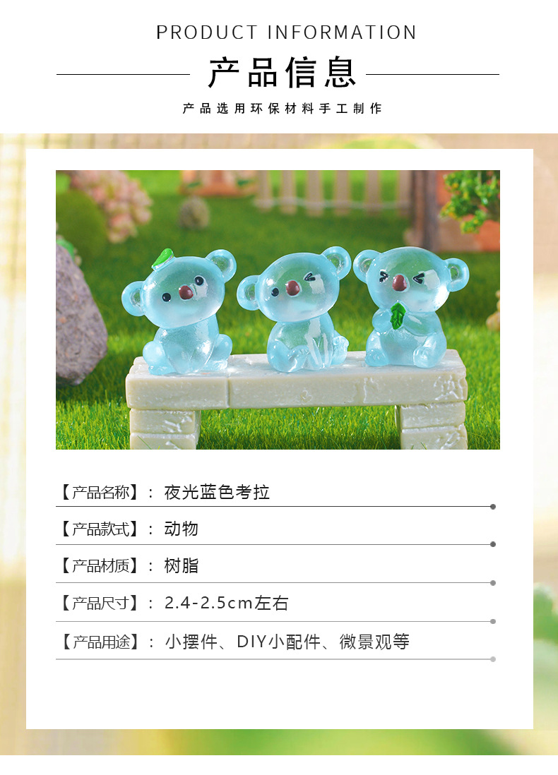透明树脂夜光卡通考拉 夜光动物摆件礼物创意家居装饰微景观配件