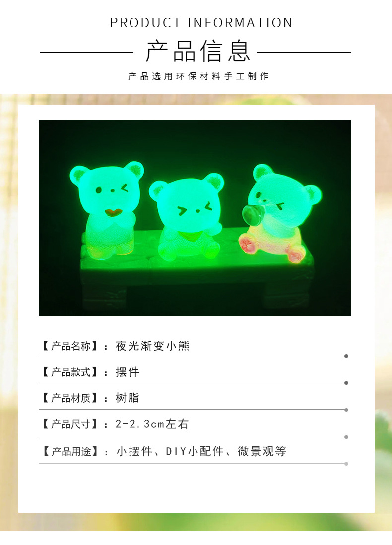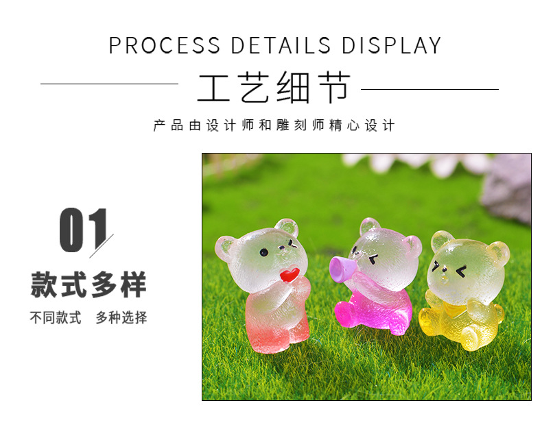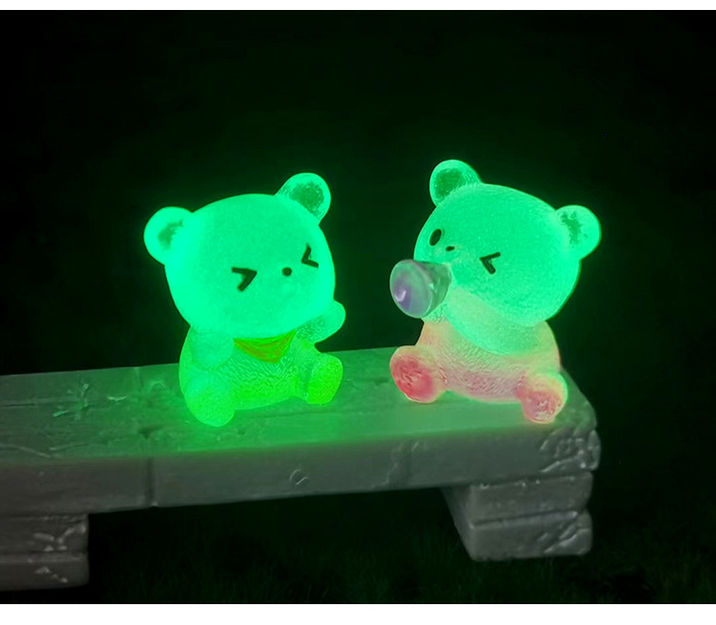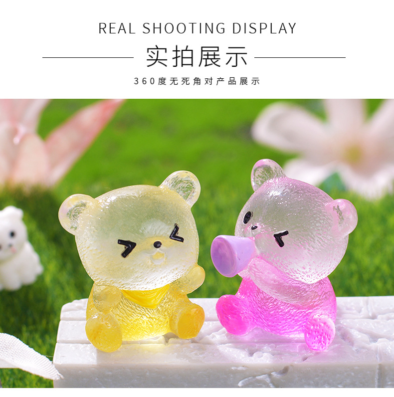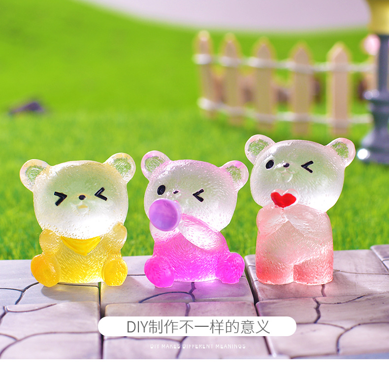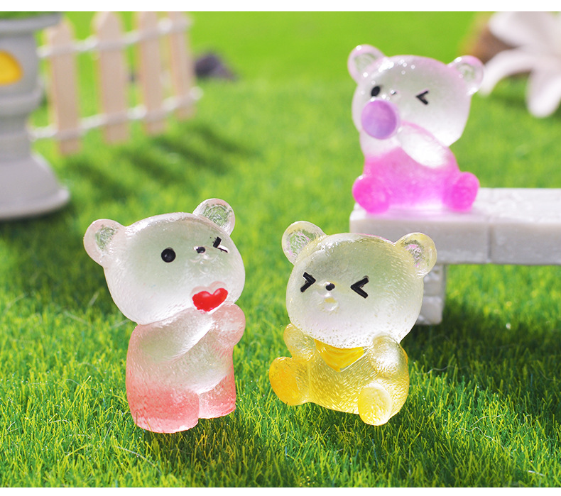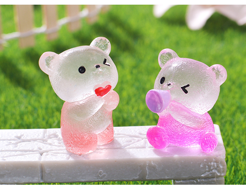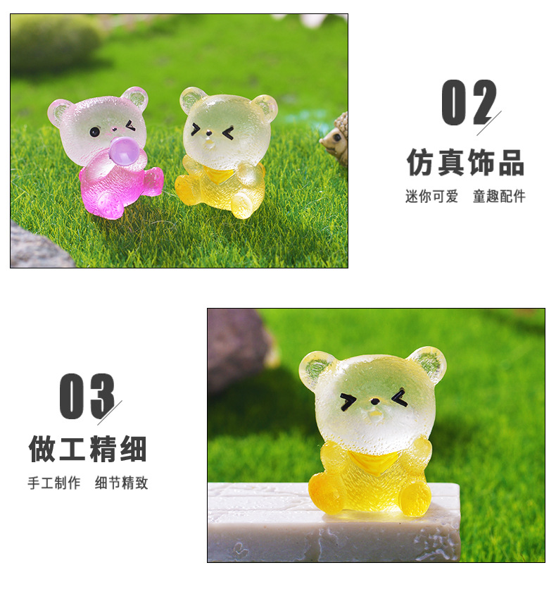微景观夜光渐变小熊摆件仿真动物园林造景配件树脂工艺装饰品摆件