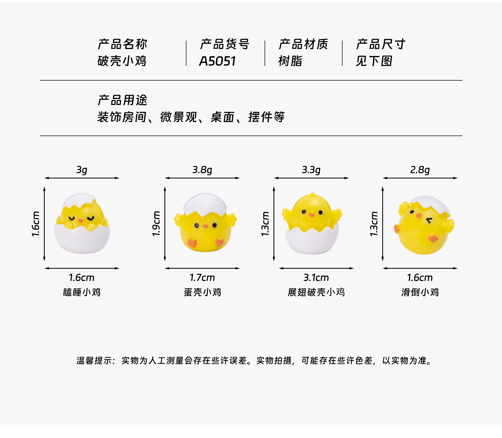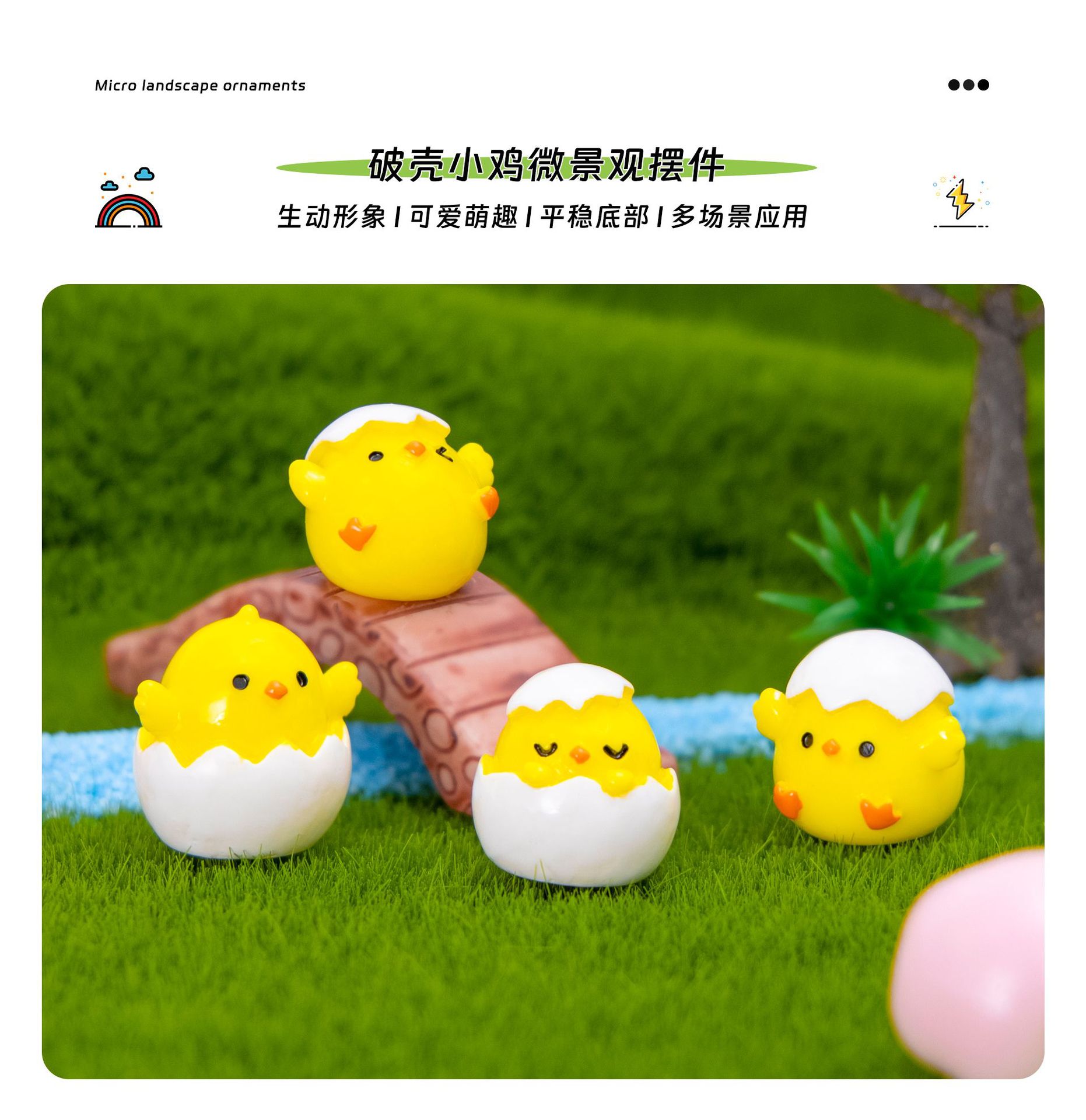 新款卡通可爱蛋壳小鸡微景观园艺小摆件 迷你小黄鸡DIY树脂工艺品