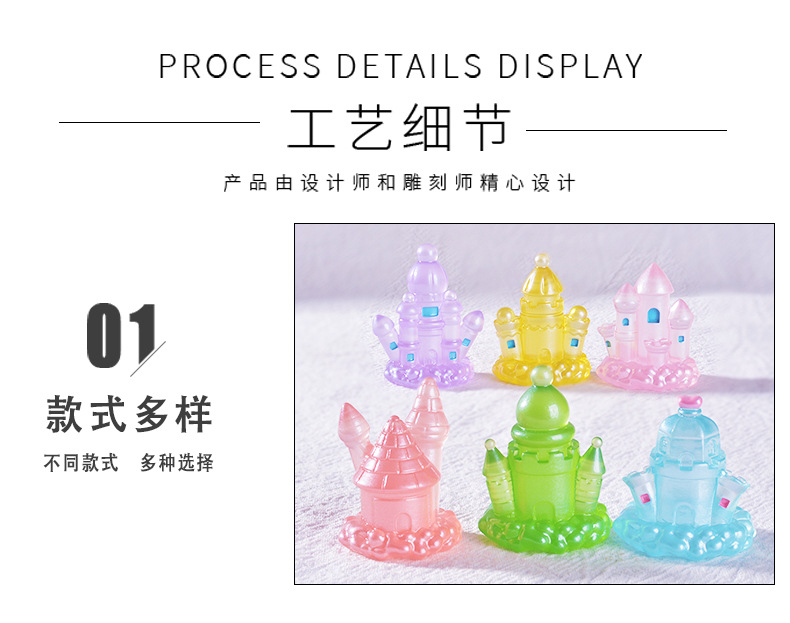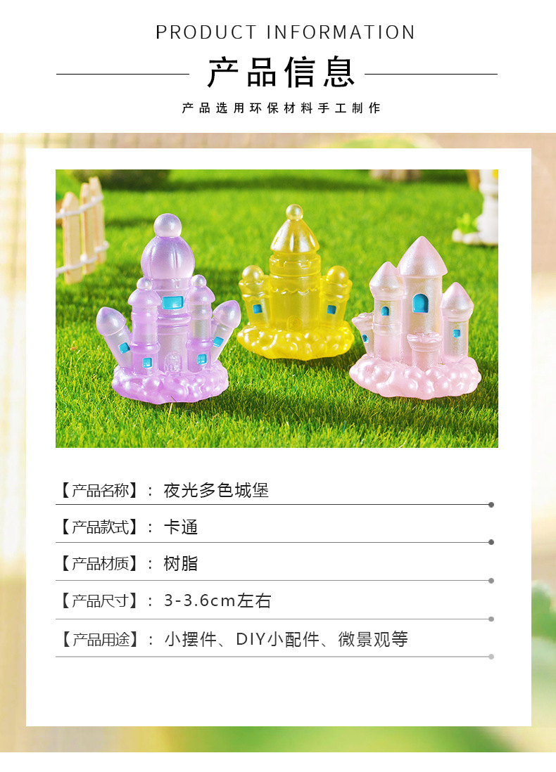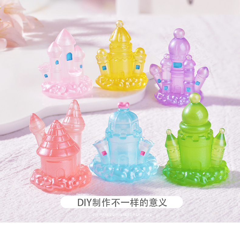 跨境夜光摆件卡通城堡微景观车载小摆件 彩色城堡DIY树脂小配件
