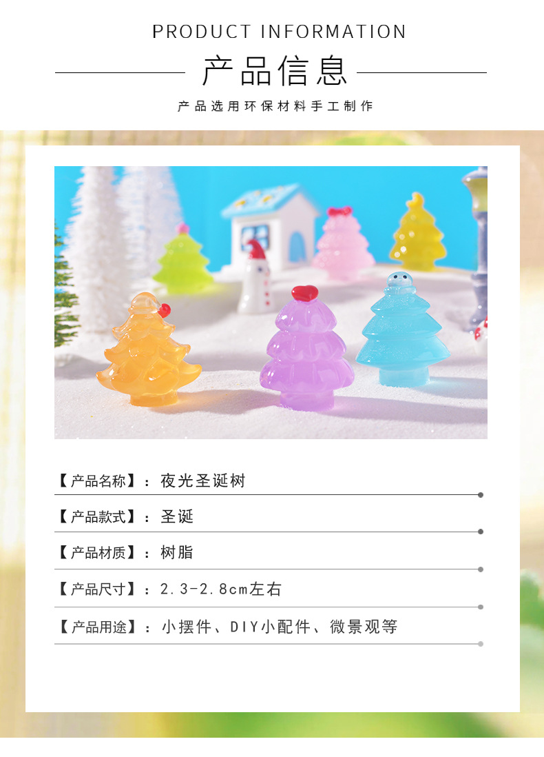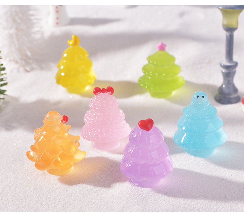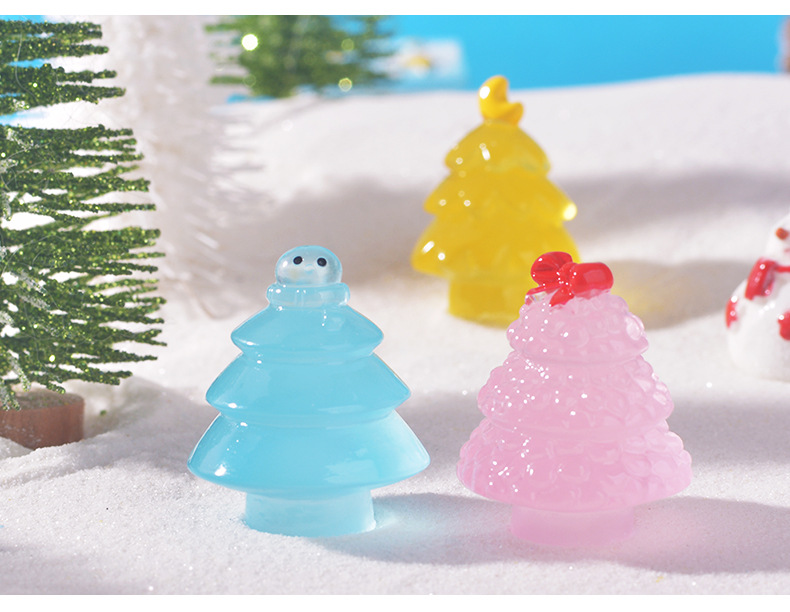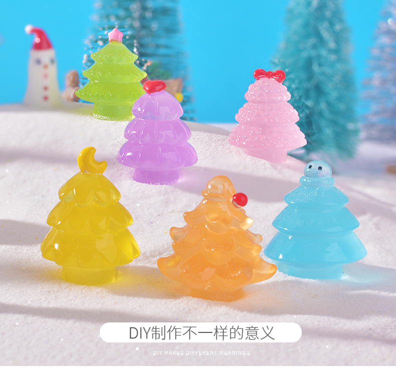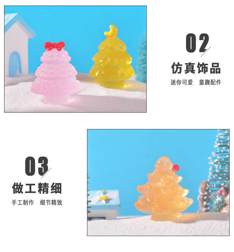 跨境圣诞节可爱夜光彩色圣诞树微景观雪景摆件 透明圣诞树DIY配件
