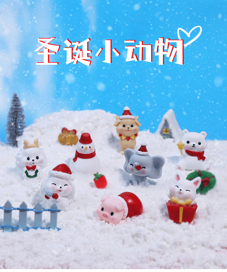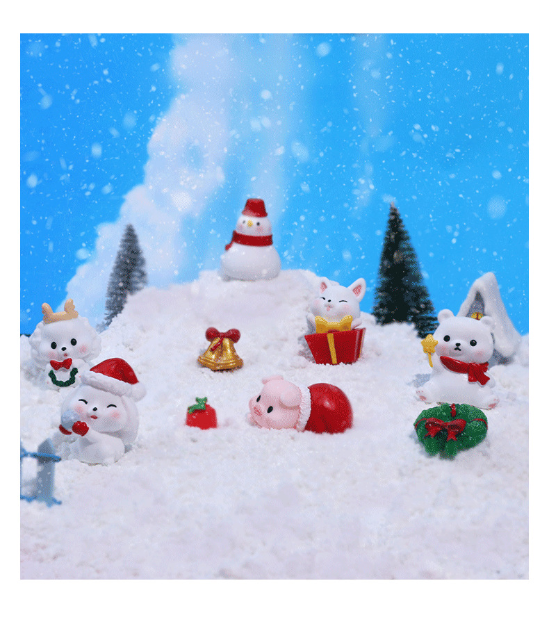微景观圣诞节装饰小动物摆件仿真雪景家居礼品树脂工艺品小摆件