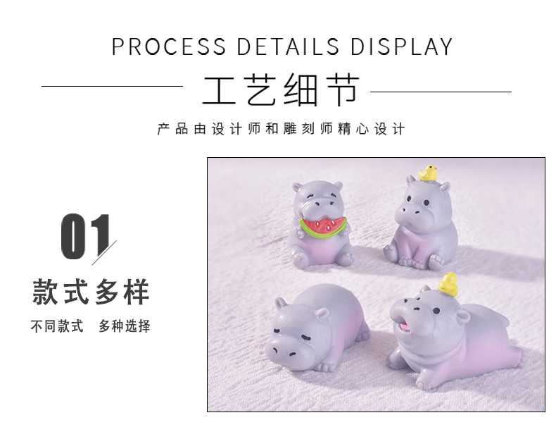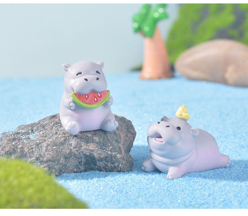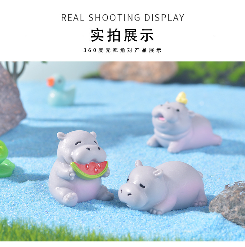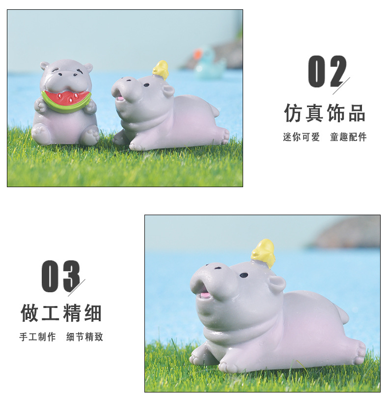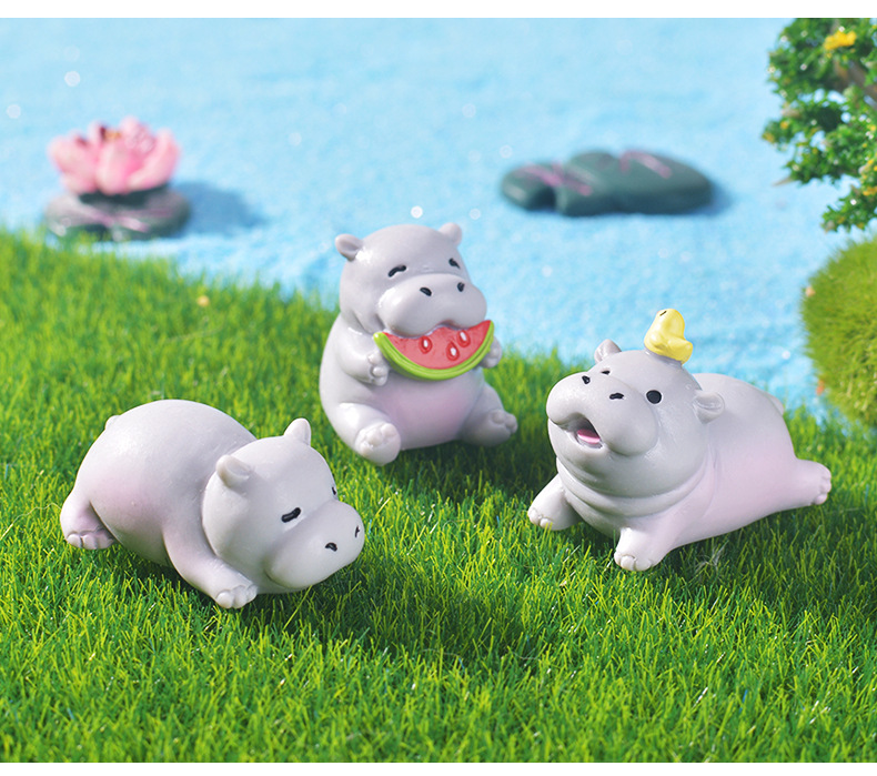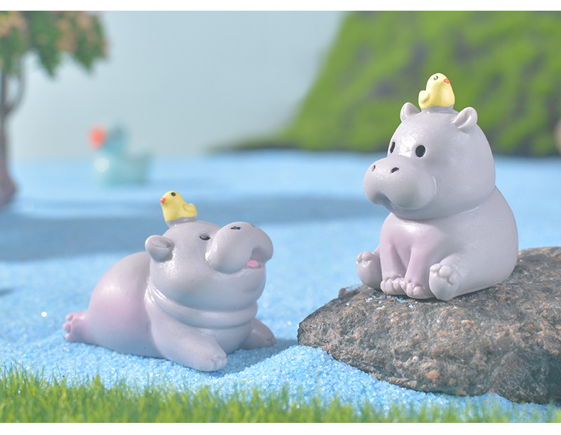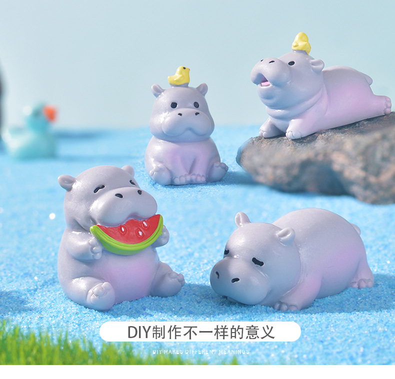跨境微景观可爱卡通河马家居桌面摆件创意装饰树脂工艺品小摆件