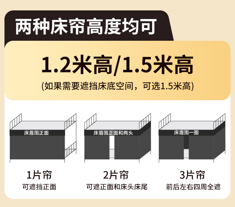 | 1.2 m high [4 m single slide rail +2 sheet curtain + bed eyebrow]](1.2米高【4米单滑轨+2片帘+床眉】) | USD $9.12 | 1688 set available |