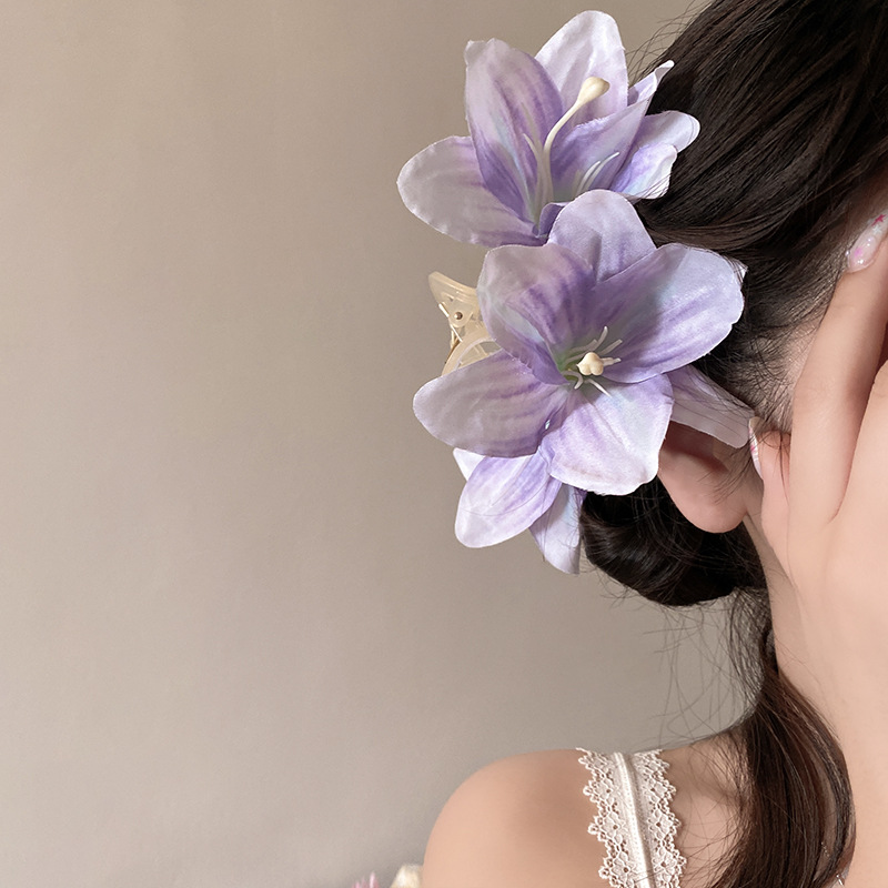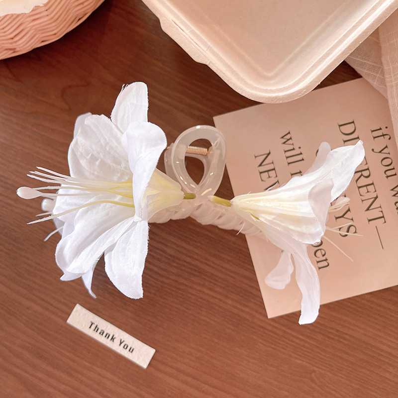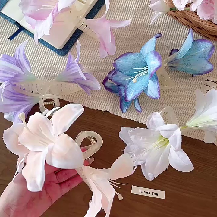 发夹超仙气质侧边刘海夹一字夹发卡头饰时尚百合花朵发夹春夏批发