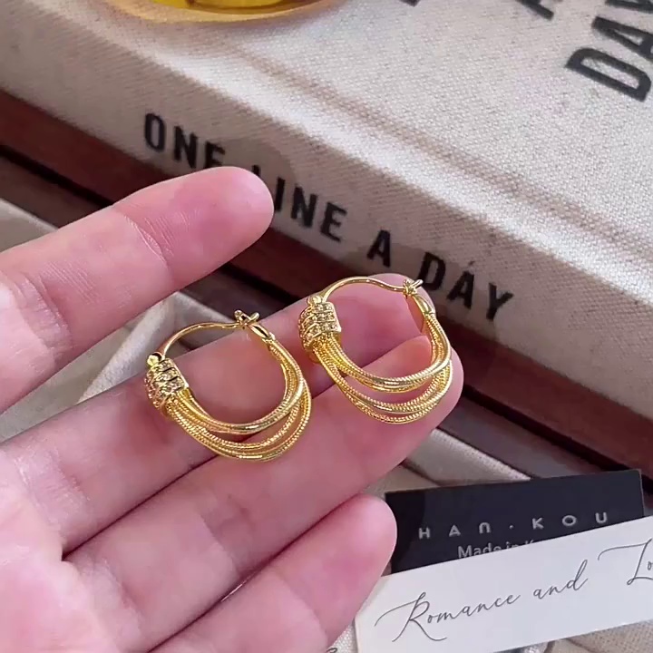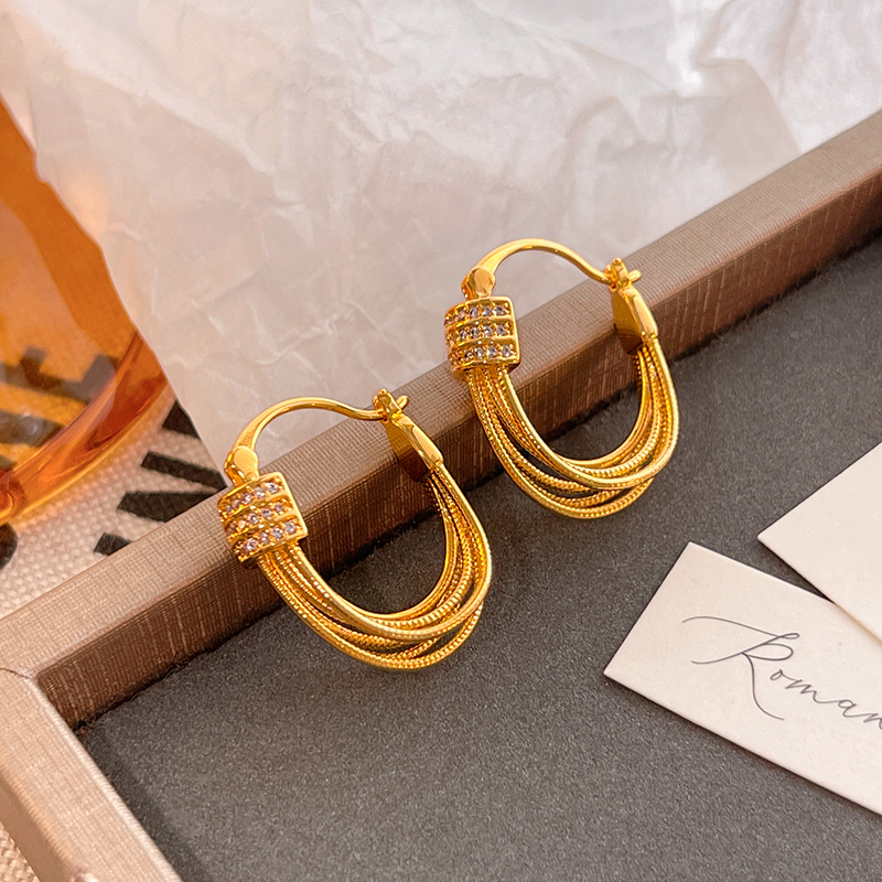 金属感冷淡风高级感耳钉耳饰真金电镀欧美跨境爆款几何形链条耳环