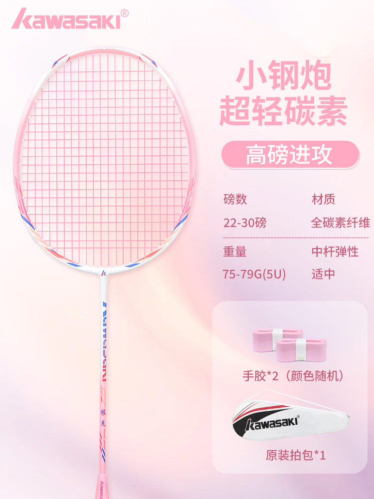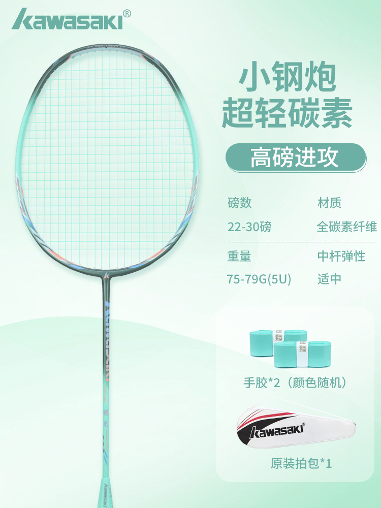 kawasaki川崎正品羽毛球拍小钢炮全碳素纤维超轻专业级训练单拍