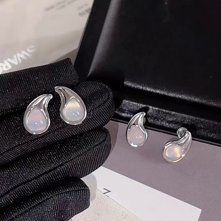 S925纯银针轻奢小众高级感水滴形耳钉时尚百搭气质月光石耳环耳饰