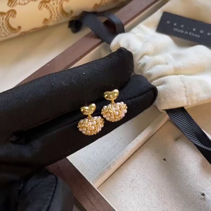 真金电镀轻奢小众高级感爱心耳环耳饰S925纯银针甜美气质花朵耳钉