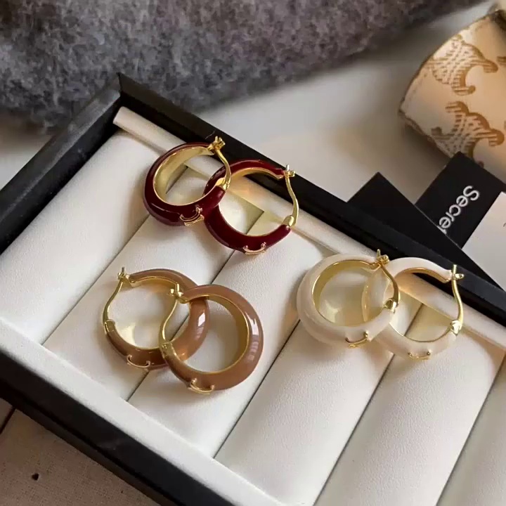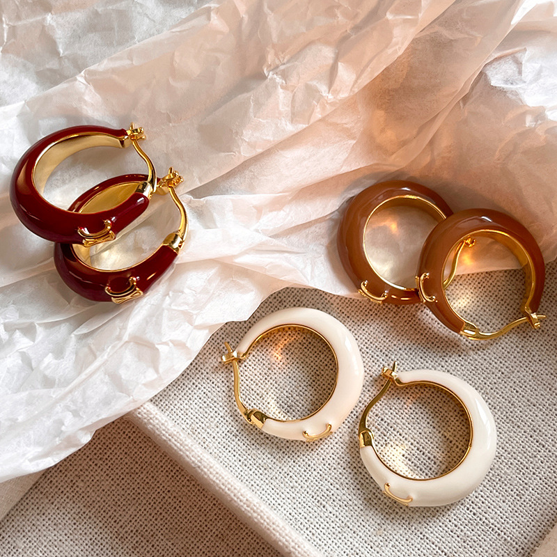 耳环小众复古高级感圆圈耳扣耳钉耳饰法式复古滴釉珐琅凯旋门耳环