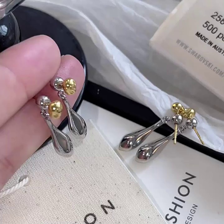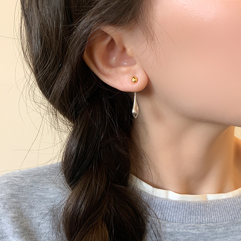 耳环小众个性气质镀白金耳钉S925纯银针金属感冷淡水滴形耳环女