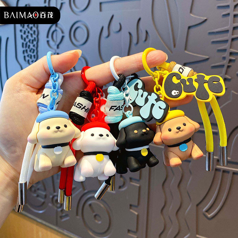 原创卡通滴胶汪星人公仔钥匙扣挂件可爱狗狗钥匙链圈学生书包挂饰