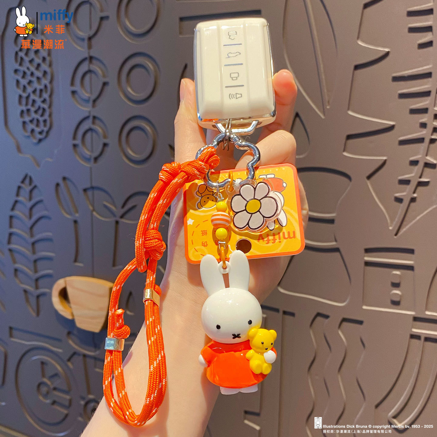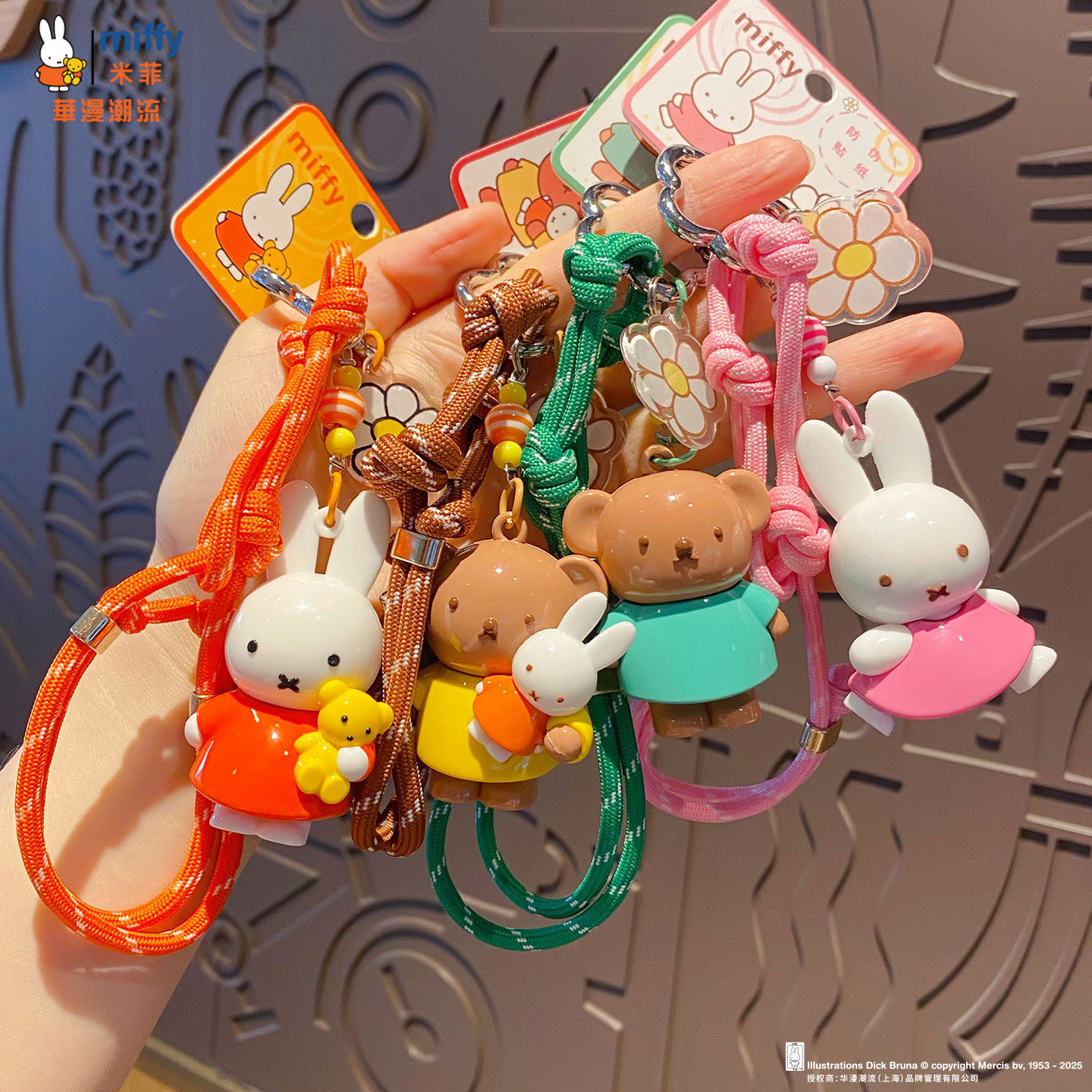 百茂正版miffy米菲兔玩偶钥匙扣挂件女时尚编绳情侣钥匙链包挂饰