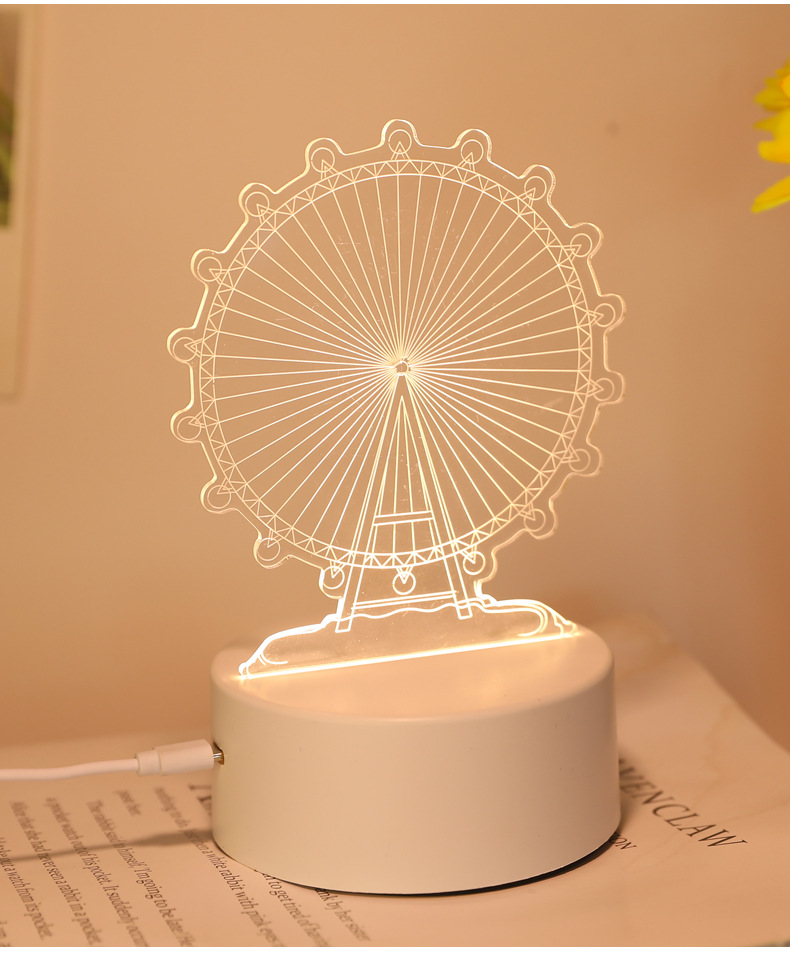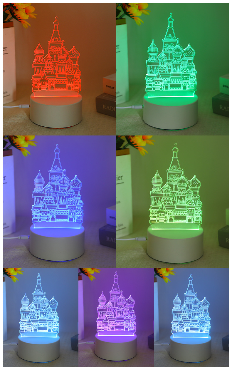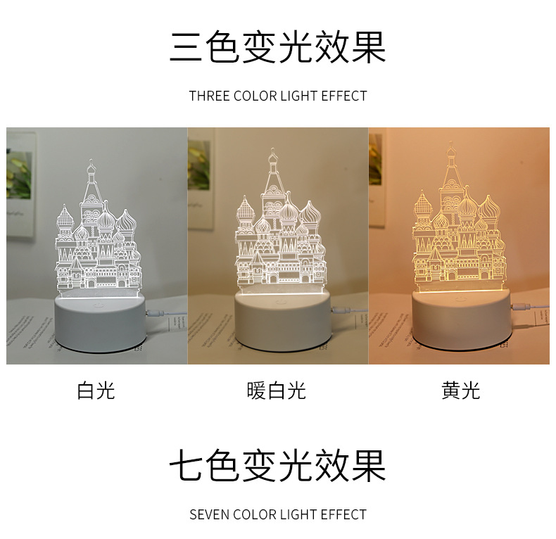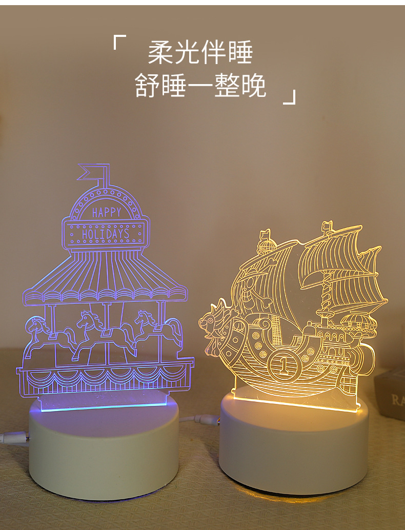 跨境3D立体小夜灯礼品创意亚克力发光玩具氛围灯卧室护眼摆件台灯