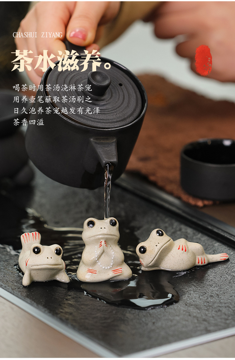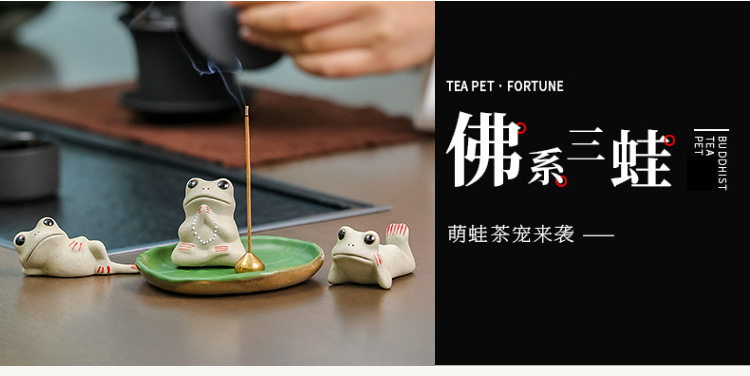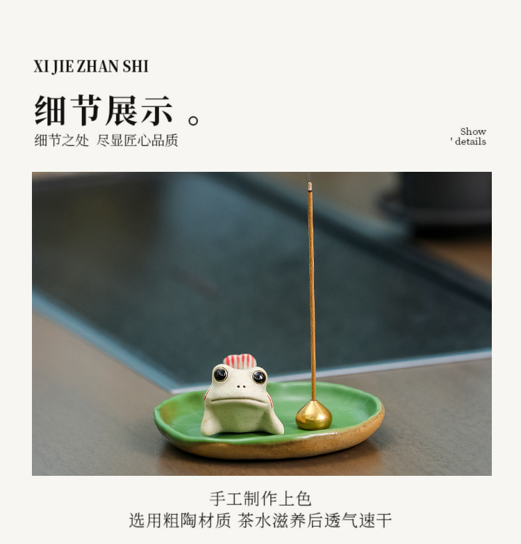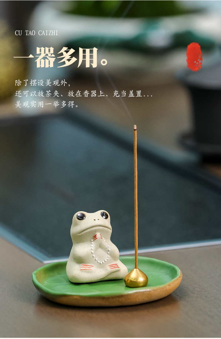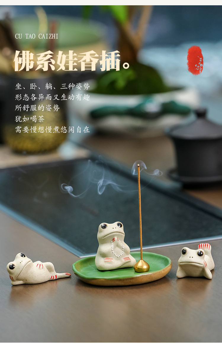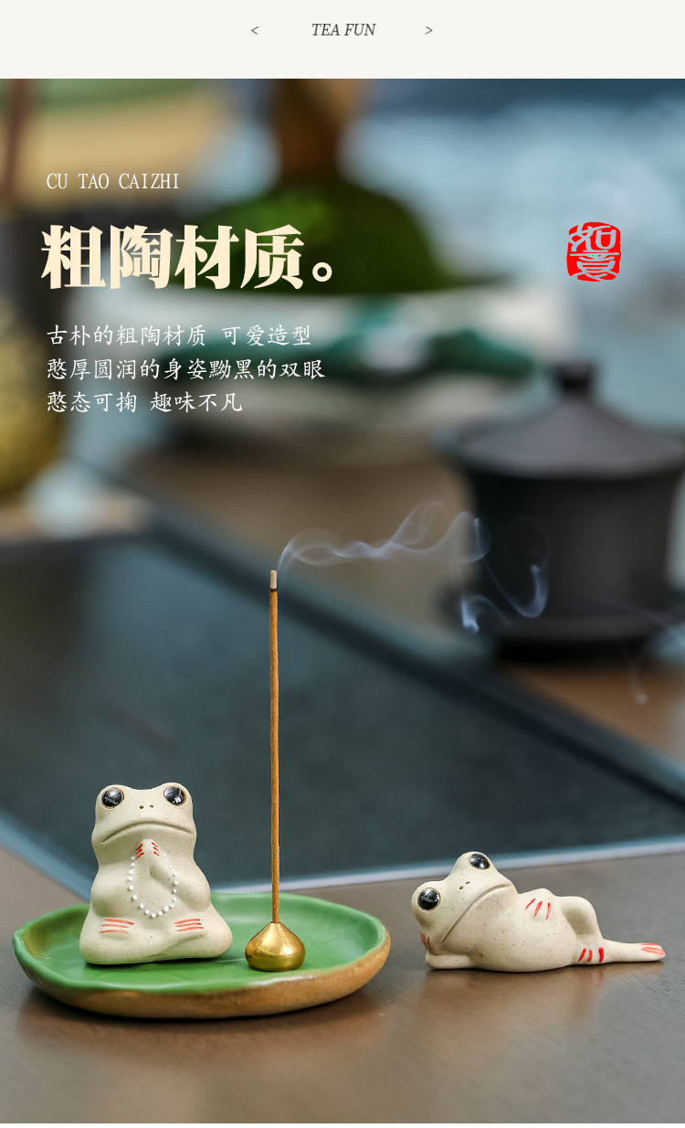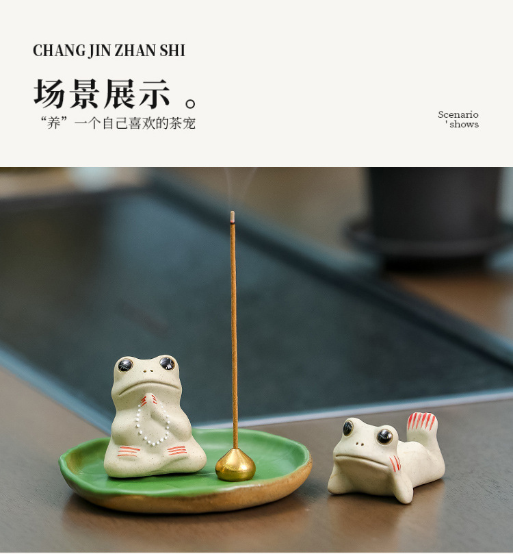 小青蛙陶瓷工艺品摆件佛系香座装饰可爱手工线香创意家用茶宠香炉