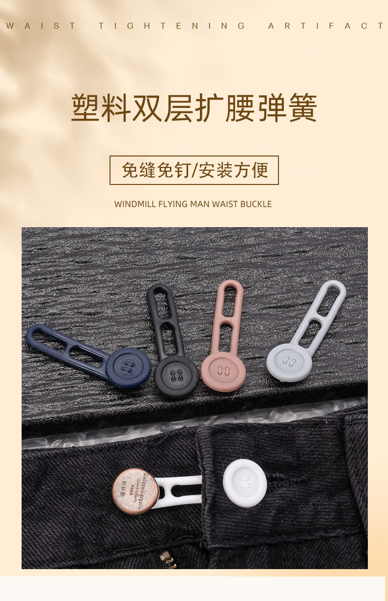 跨境弹簧橡皮塑料扩腰神器裤腰伸缩调节延长纽扣裤腰加长调节纽扣