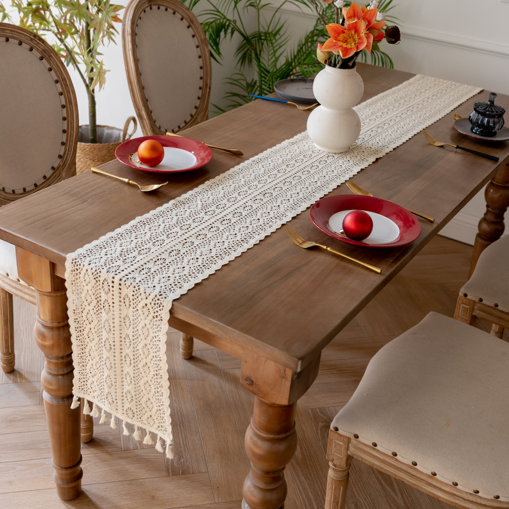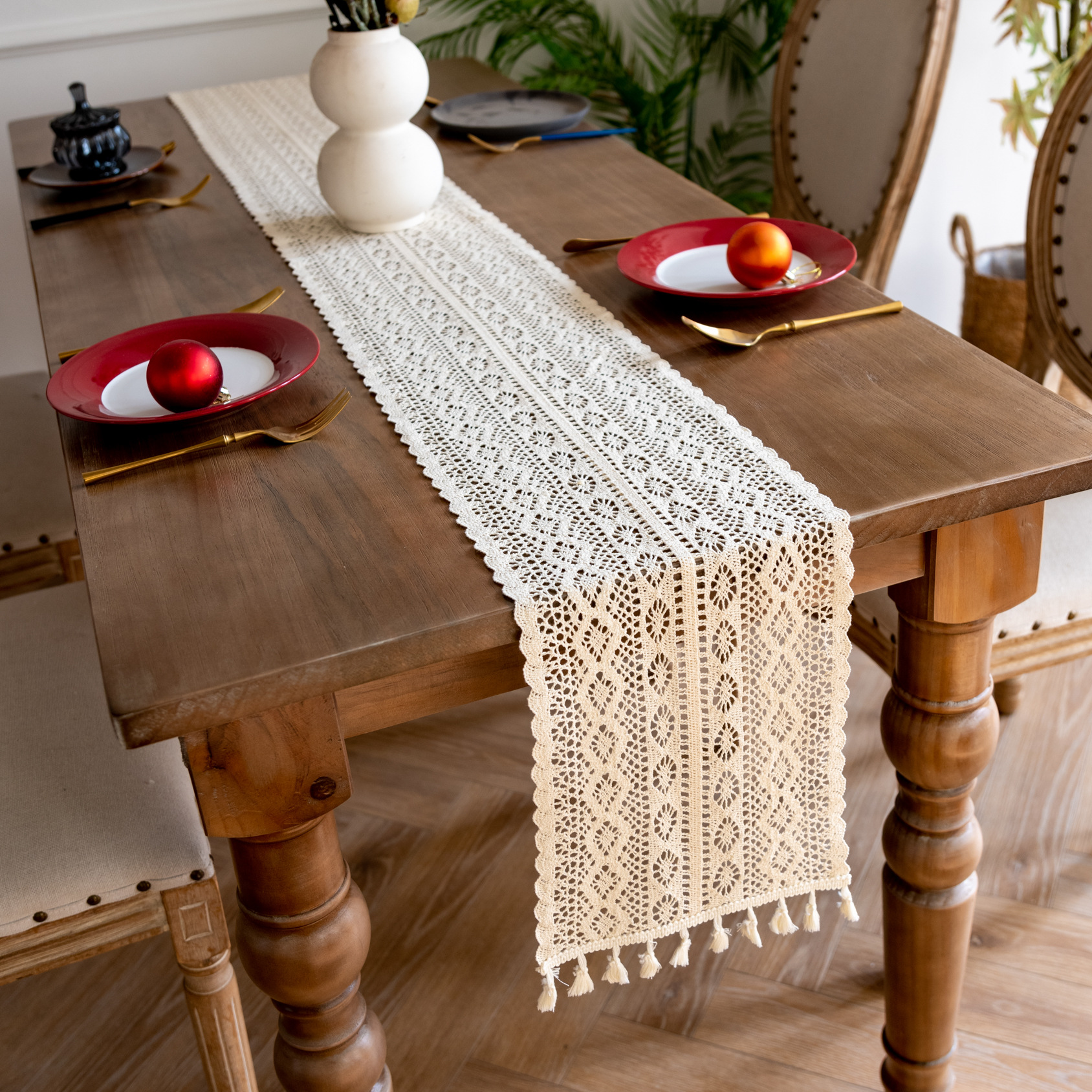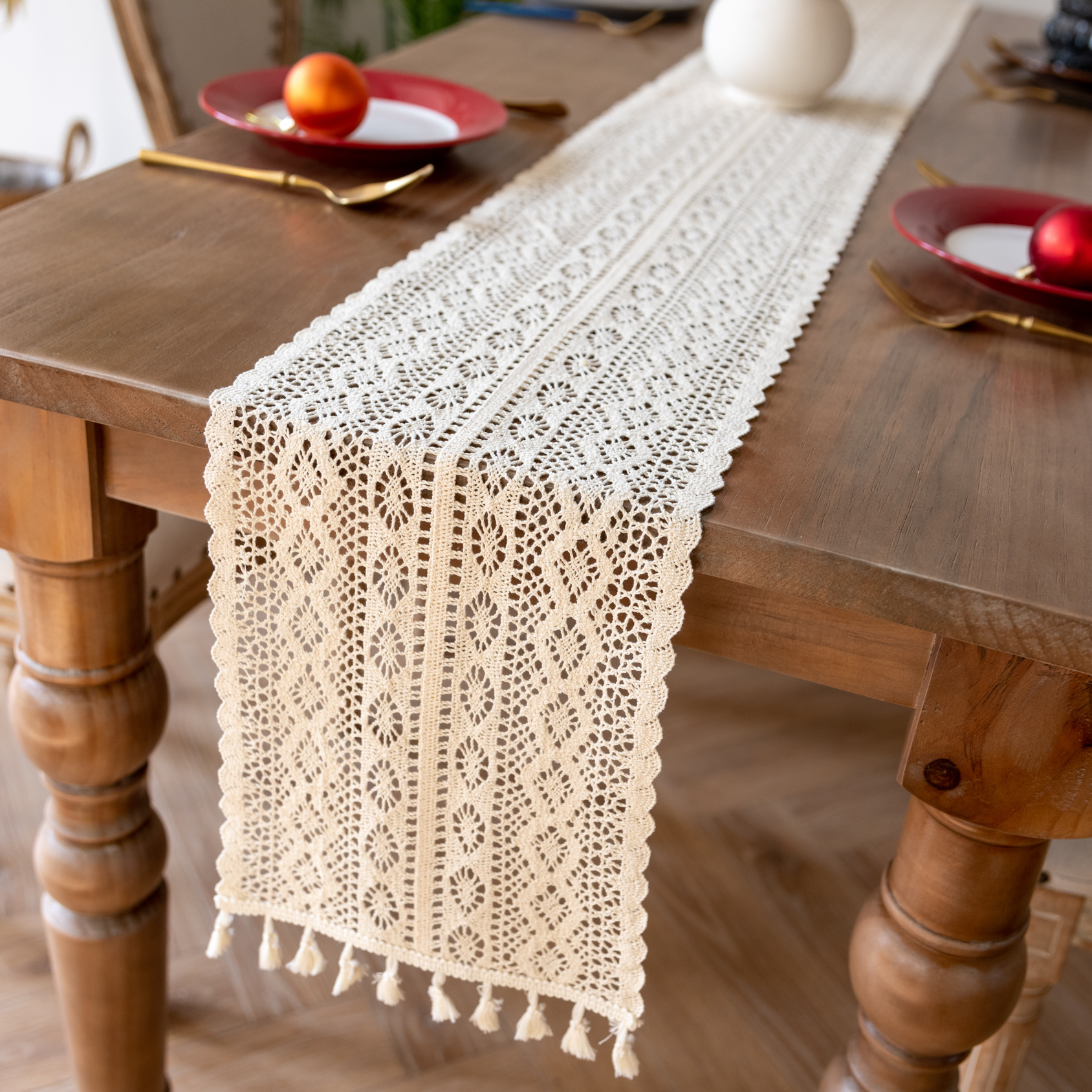 跨境亚马逊镂空桌旗装饰聚会派对钩针线棉绳编制桌巾茶桌复古欧式